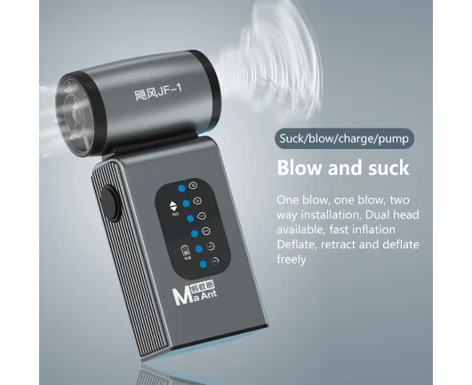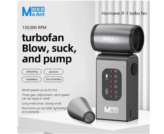 توربو فن MaAnt مدل JF-1 یک جت فن شارژی با قابلیت دمیدن و مکش است که برای کاربردهای مختلف مانند تمیز کردن گرد و غبار از بردهای الکترونیکی، خنک کردن قطعات موبایل، کامپیوتر و سایر تجهیزات مناسب است. این محصول در دسته ابزار تعمیرات، تهویه و گجتهای کاربردی قرار میگیرد.