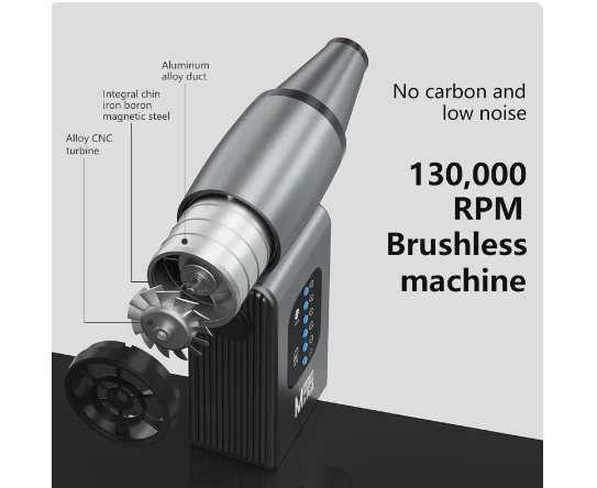 - مجهز به موتور براشلس (بدون جاروبک) با سرعت بالا (تا 100,000 دور در دقیقه).