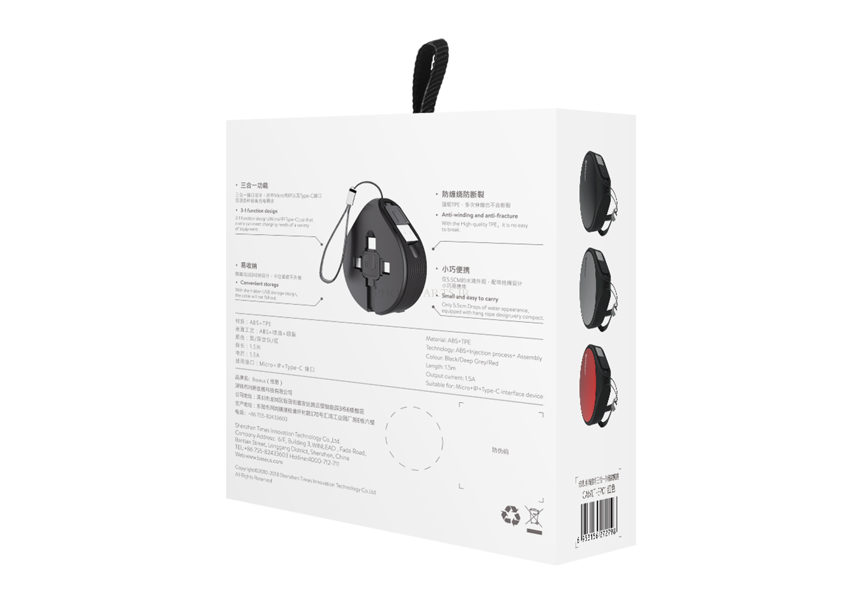 کابل تبدیل USB به microUSB / USB-C / لایتنینگ باسئوس مدل CAMLT- EP01