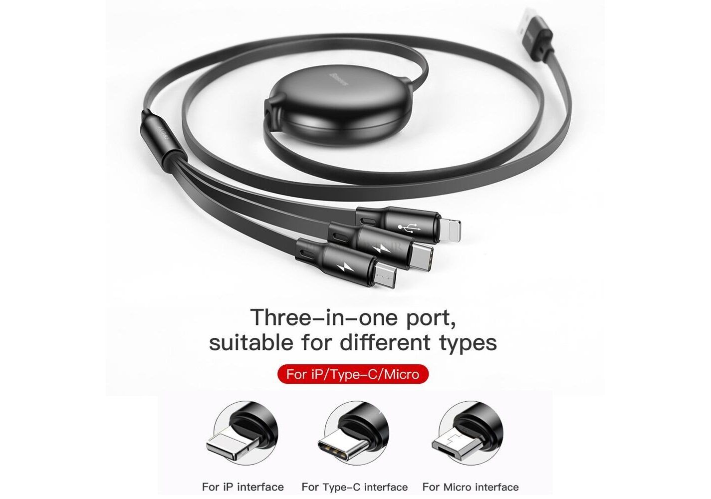 کابل تبدیل USB به USB-C/microUSB/لایتنینگ باسئوس مدل CAMLT-ZY طول 1.2 متر