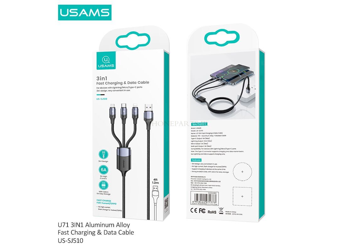 کابل تبدیل USB به microUSB / USB-C / لایتنینگ یوسمز مدل U71