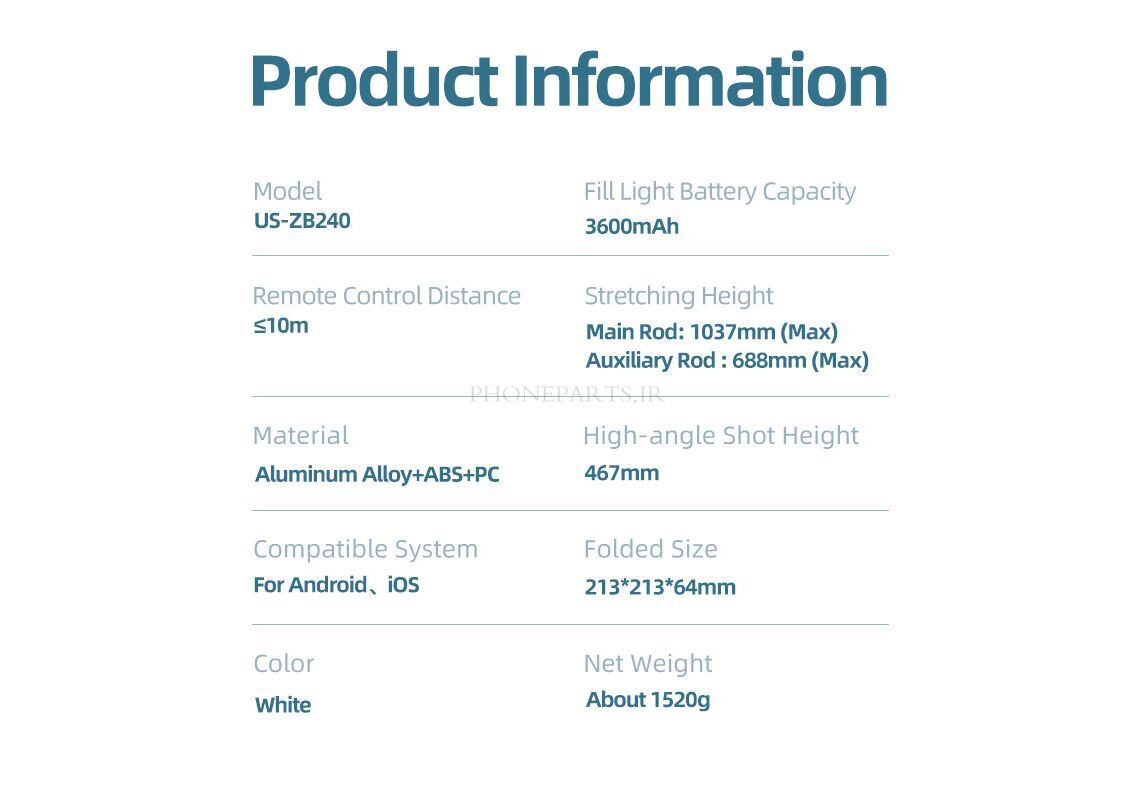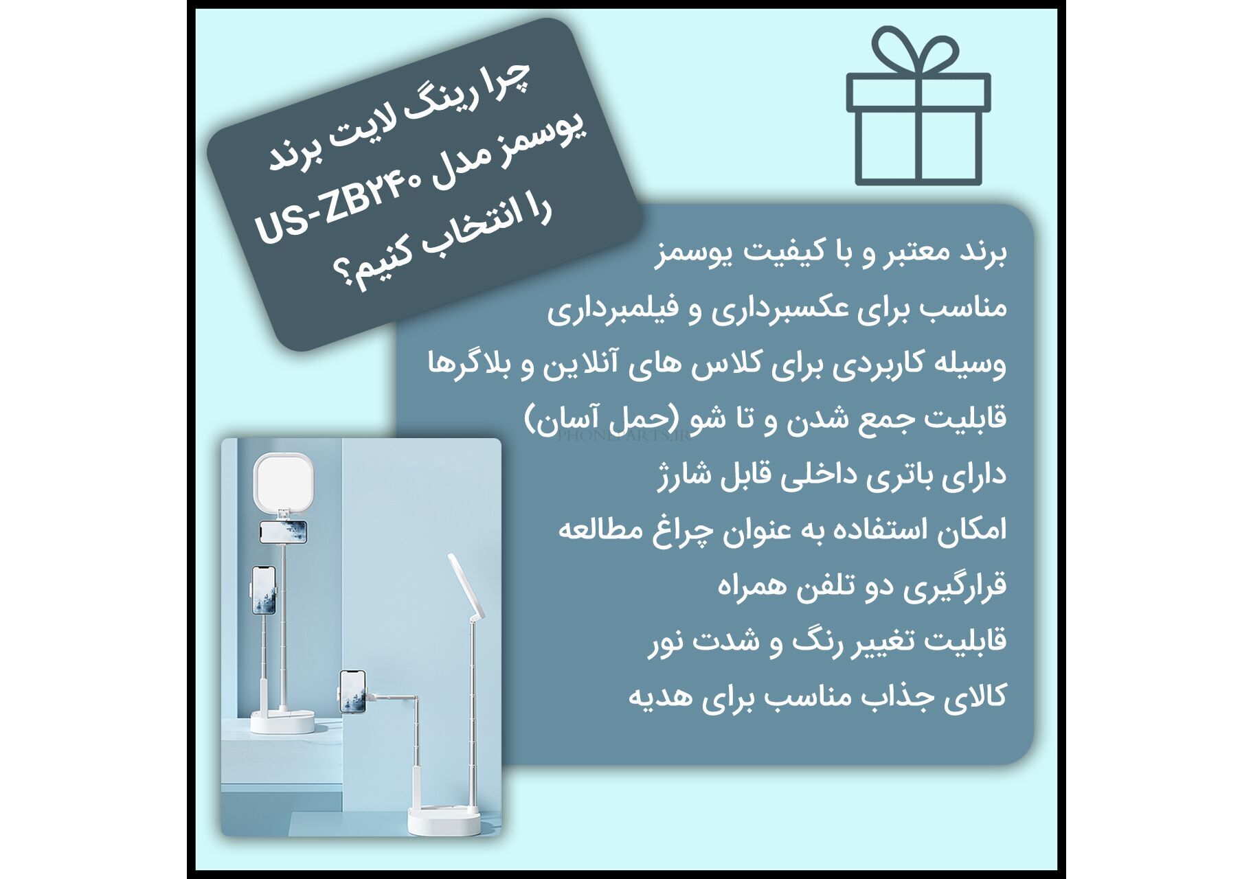 چراغ حلقه LED چند منظوره ZB240 (با نگهدارنده تلفن همراه دوگانه)