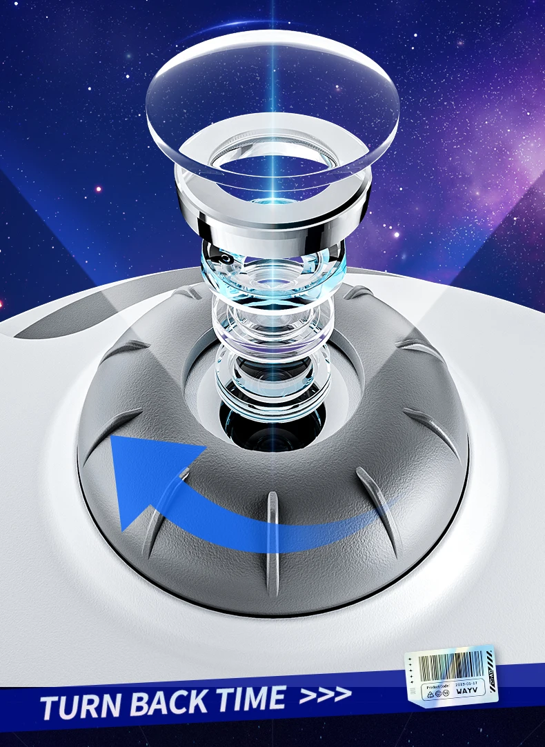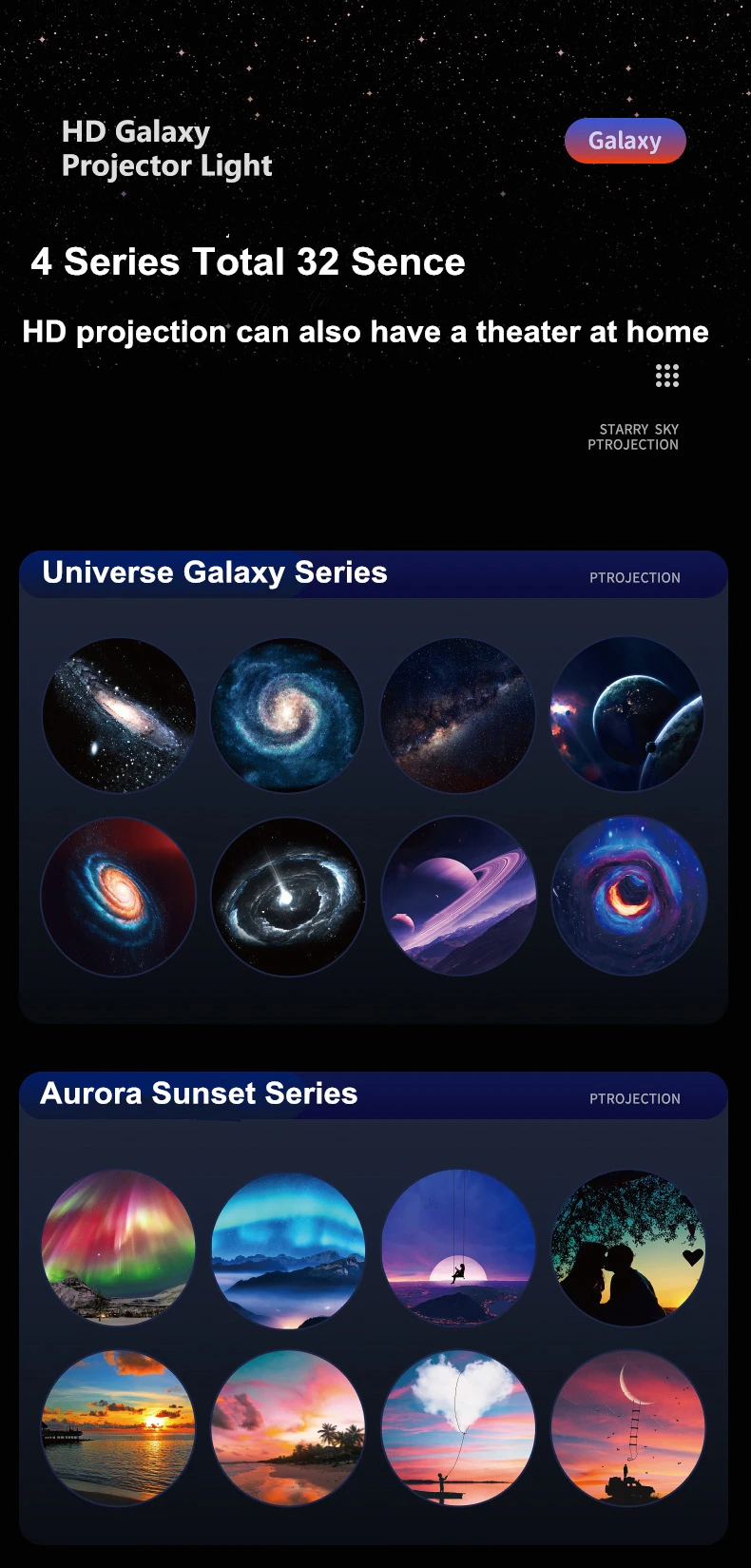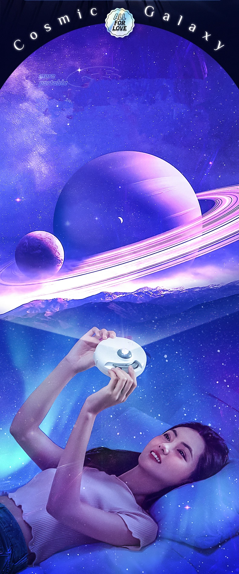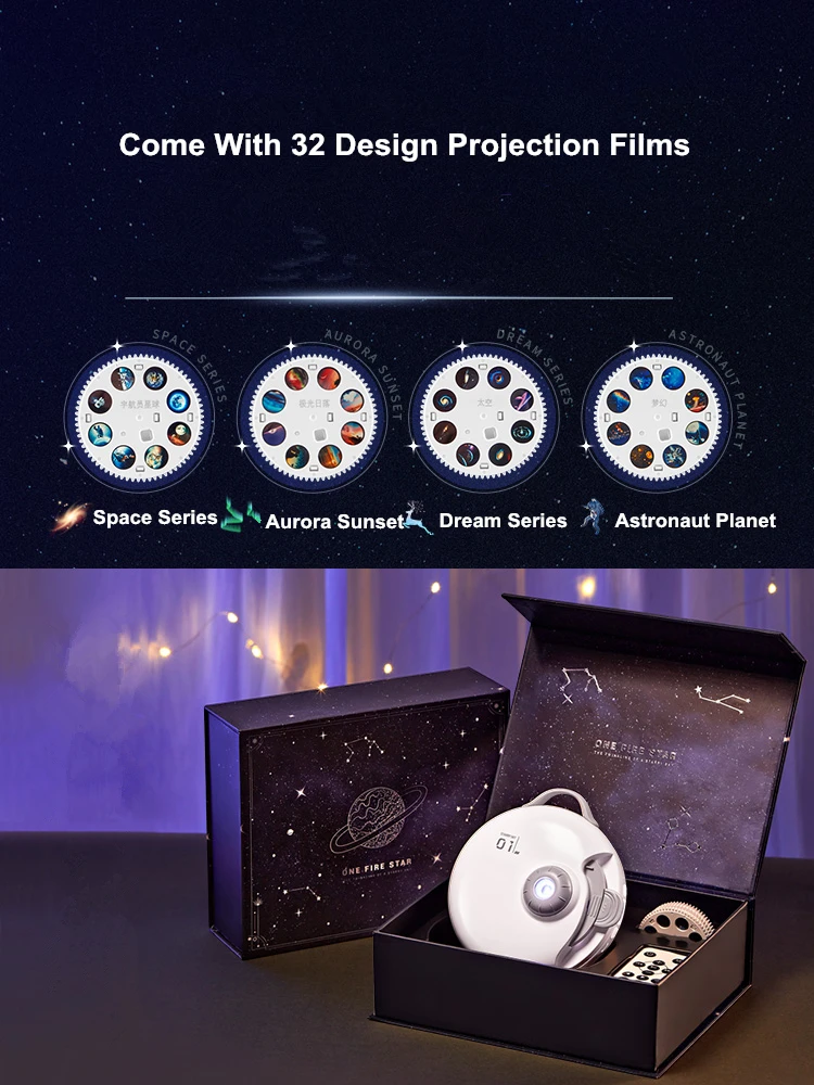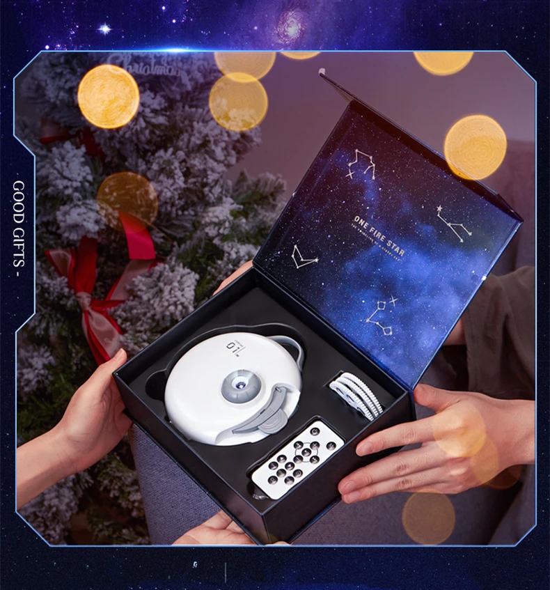 - نور کهکشانی HD قابل فوکوس: نمایش نورهای متحرک و رنگی روی سقف یا دیوار با وضوح بالا.