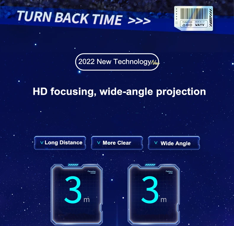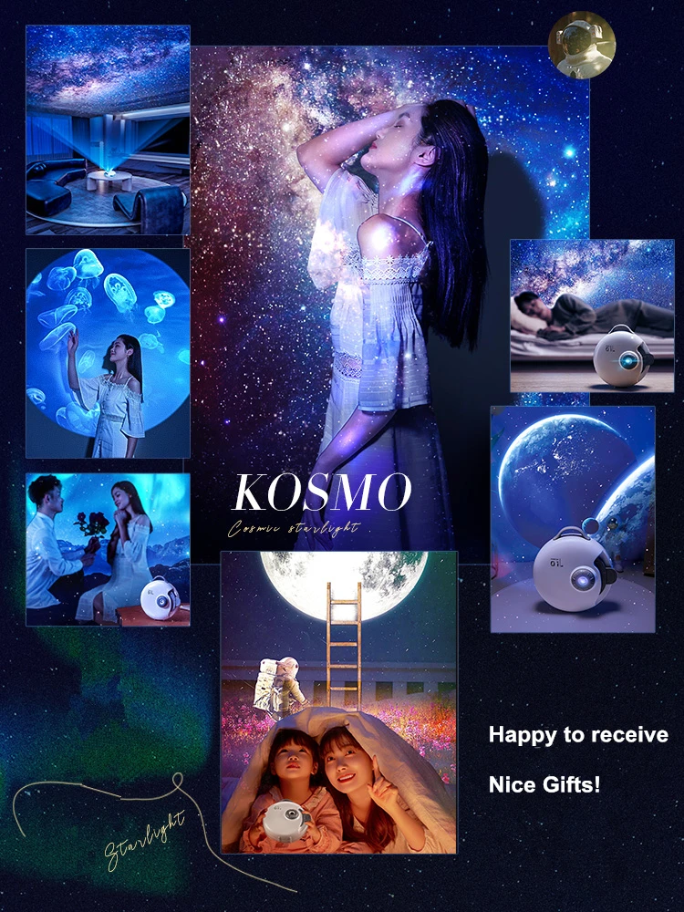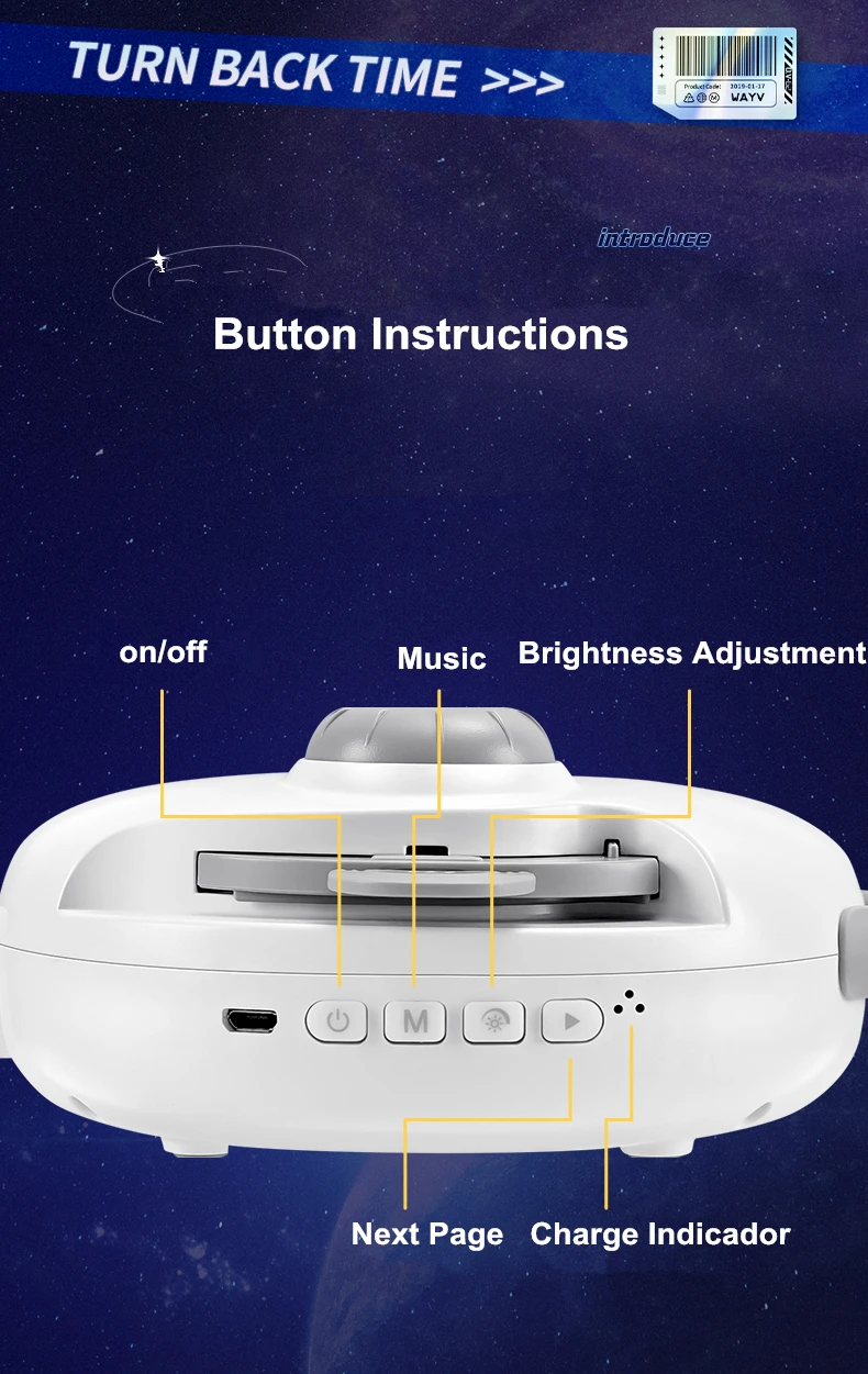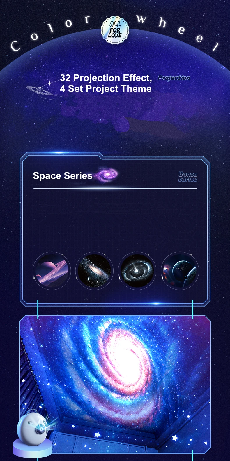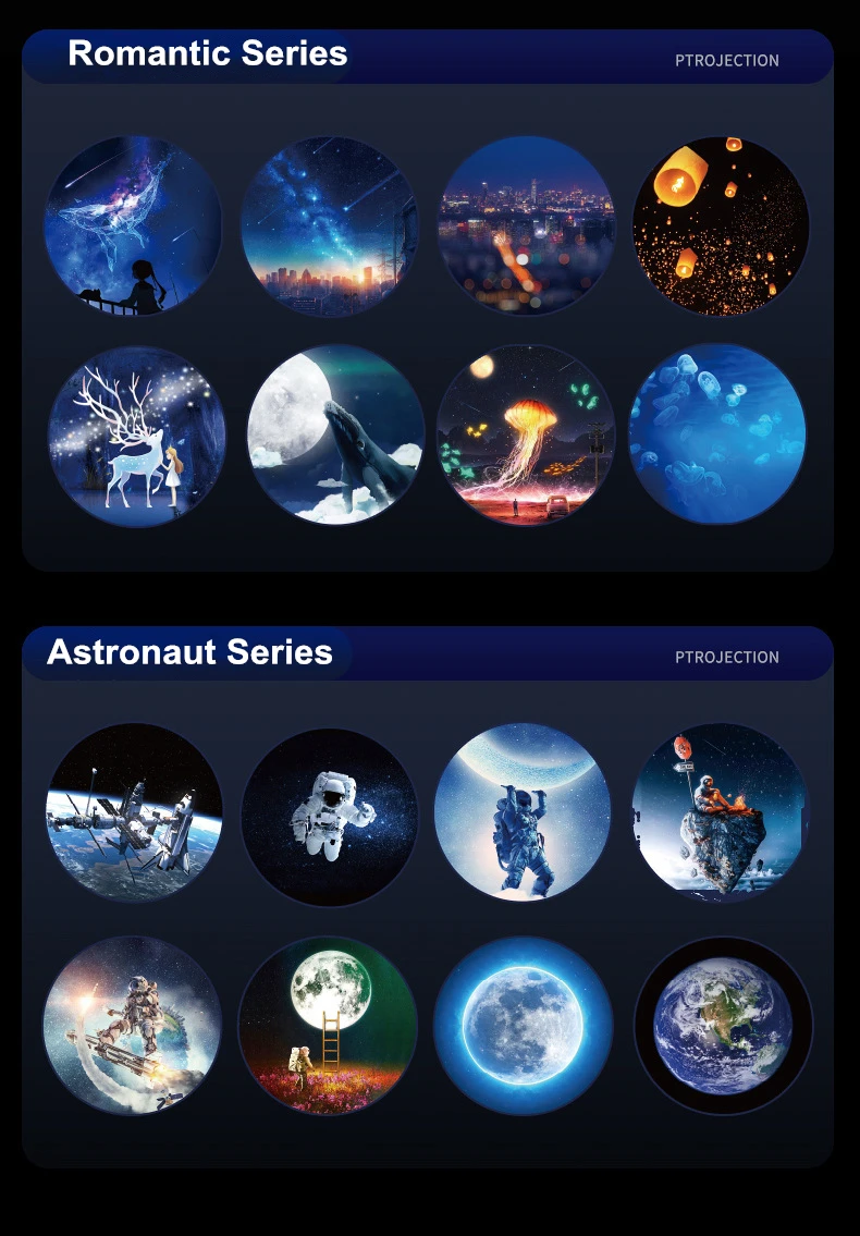 - نور کهکشانی HD قابل فوکوس: نمایش نورهای متحرک و رنگی روی سقف یا دیوار با وضوح بالا.