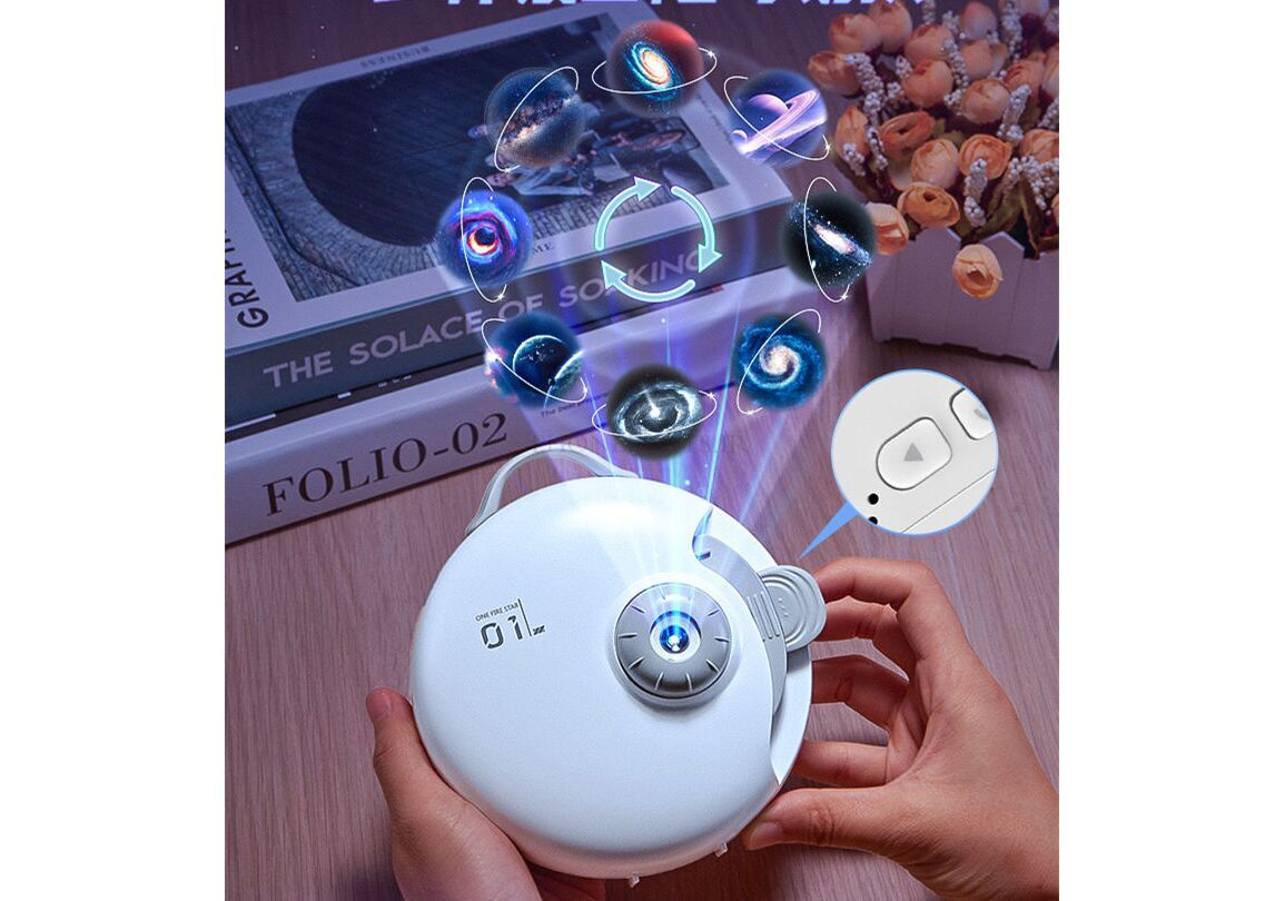 - نور کهکشانی HD قابل فوکوس: نمایش نورهای متحرک و رنگی روی سقف یا دیوار با وضوح بالا.