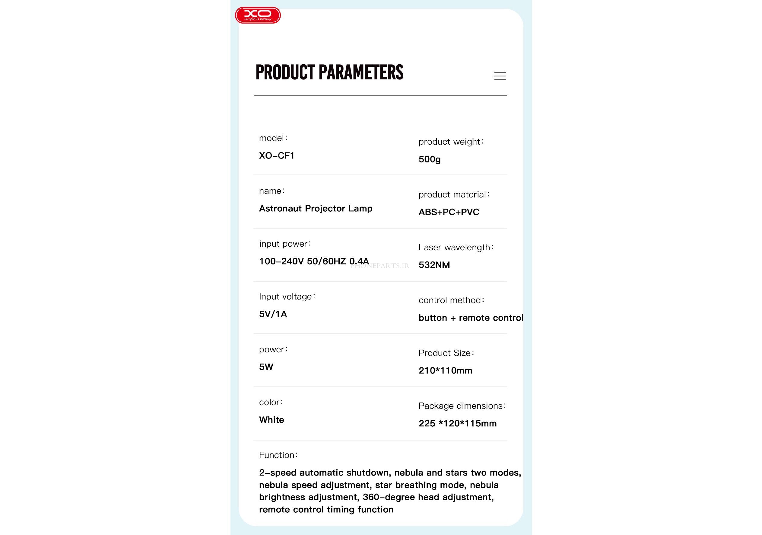 ■مدل: لامپ پروژکتور ستاره فضانورد XO-CF1