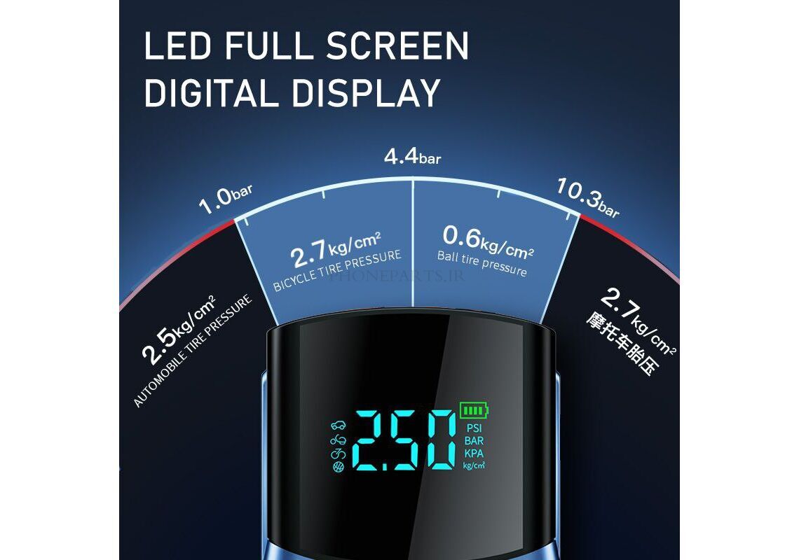 • پمپ باد قوی: دارای حداکثر فشار 150 PSI و جریان هوا 35 لیتر در دقیقه است که می‌تواند به سرعت تایرهای خودرو را باد کند.