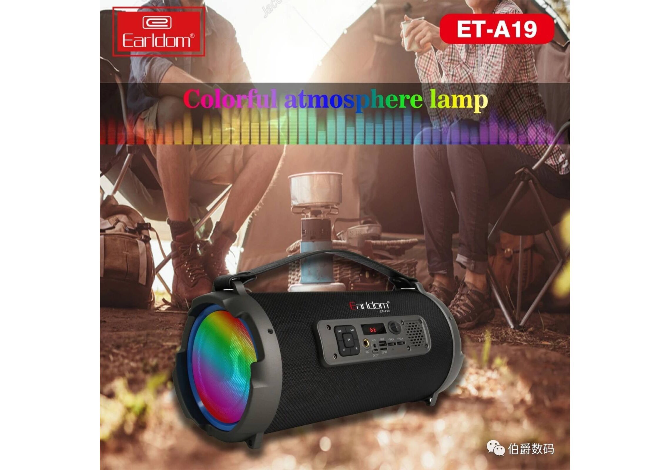 اسپیکر بلوتوثی و قابل حمل Earldom مدل ET-A19 با قابلیت های فراوان و مناسب برای انواع گردش و تفریحات در بیرون از خانه،جشن و پارتی های خودمانی با طراحی زیبا، مدرن با خاصیت تولید رقص نور و کاراکوئه جزء باند های دسته دار چرمی و پرتابل میباشد.