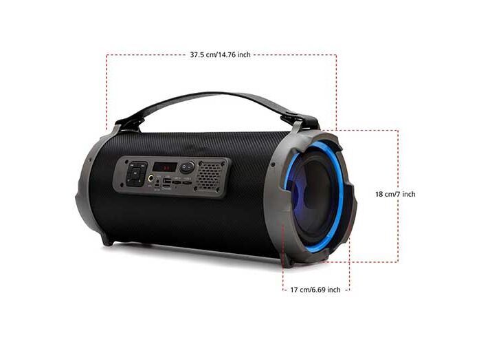 از مزیت های این بلندگو وایرلس و قابل حمل که توسط یک دسته نگهدارنده محکم چرمی براحتی میتوانید آن را جابه جا کرد. سایز375*170*180 میلی متر بعلاوه وزنی در حدود دو کیلوگرم نسبت به جثه خود سبک و جمع و جور بوده و همراه عالی میباشد.