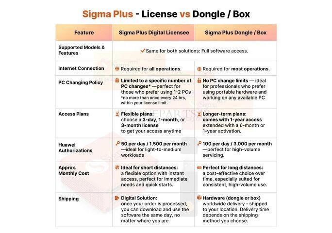 | ویژگی | لایسنس سیگما پلاس | دانگل / جعبه سیگما پلاس |