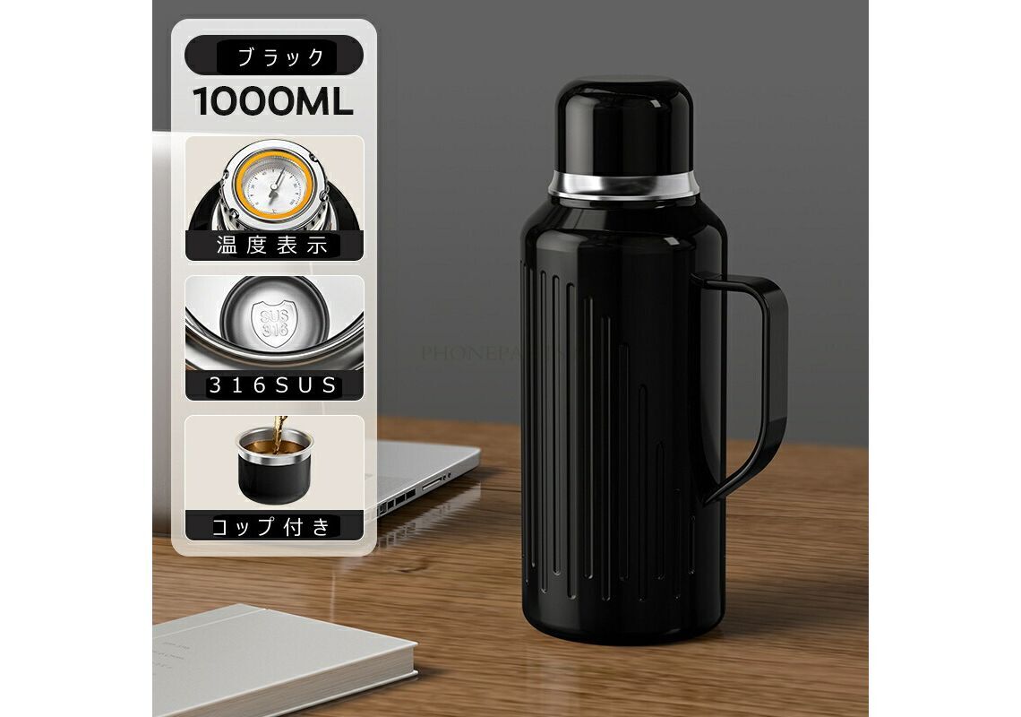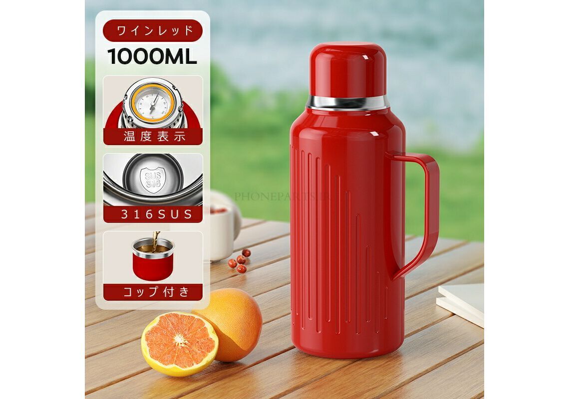 فلاسک دوجداره همراه با دماسنج و لیوان