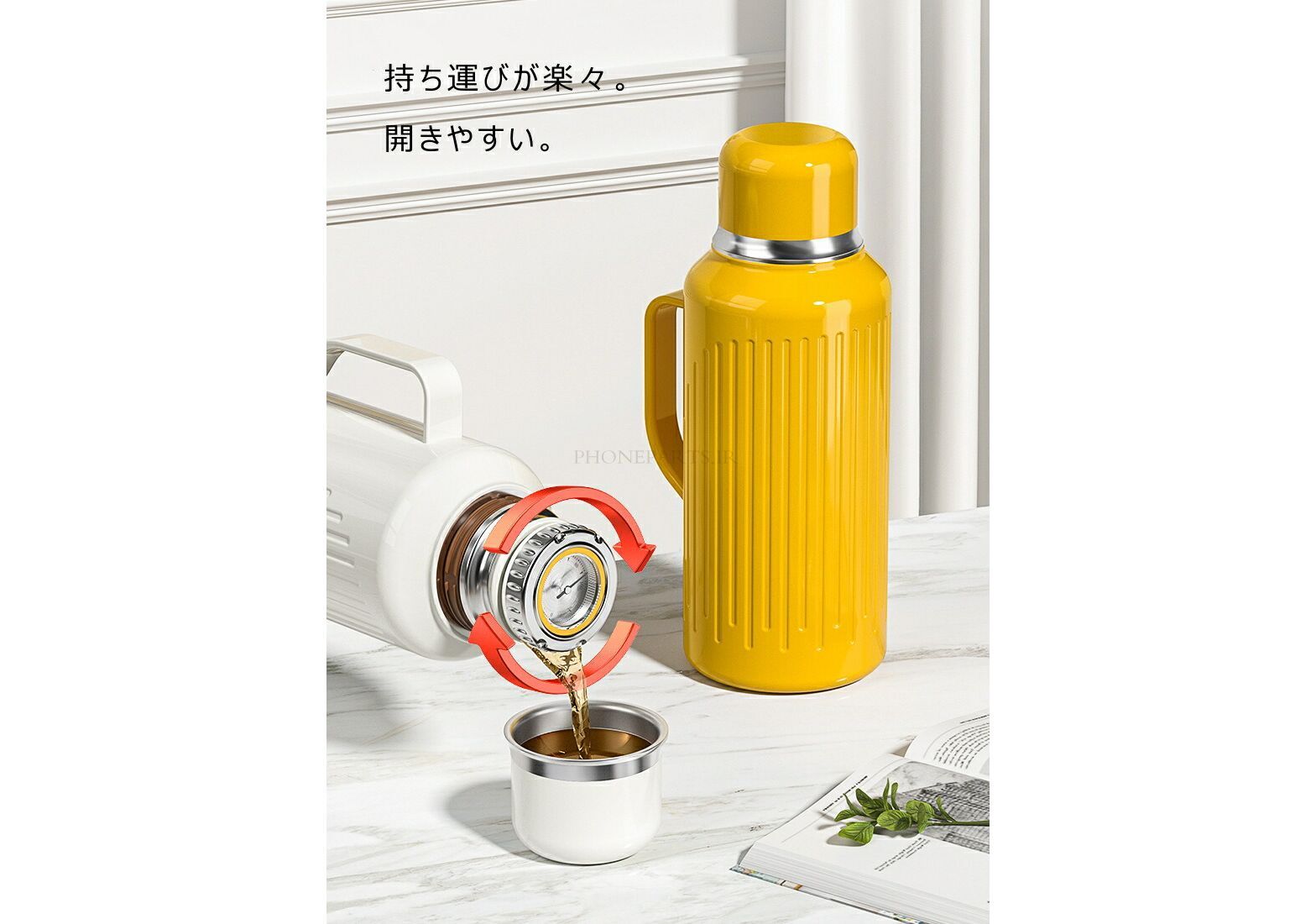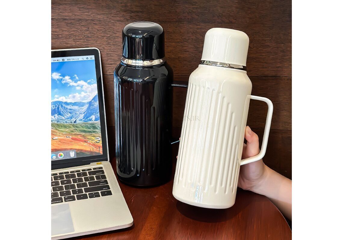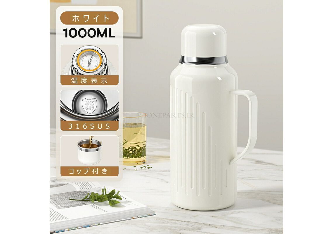 فلاسک دوجداره همراه با دماسنج و لیوان