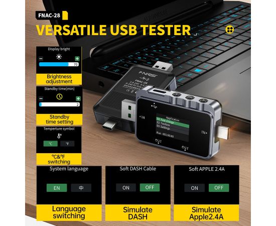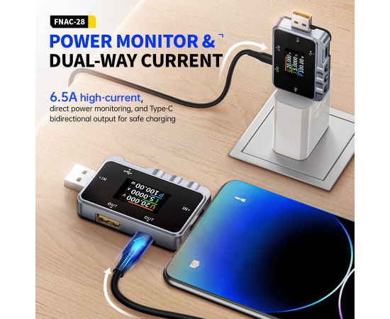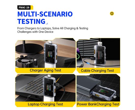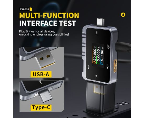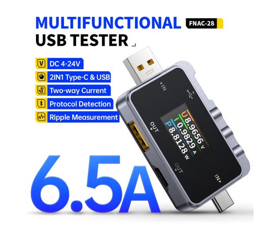 تستر FNIRSI FNAC-28 یک دستگاه پیشرفته و چندکاره برای تست و تحلیل عملکرد شارژرها، پاوربانکها، کابلهای USB و دستگاههای متصل به پورتهای USB-A و Type-C است. این ابزار با طراحی جمعوجور، نمایشگر رنگی و قابلیتهای حرفهای، انتخابی ایدهآل برای مهندسان، تکنسینهای برق، و علاقهمندان به فناوری است که به دنبال دقتی بالا در اندازهگیری و بررسی پروتکلهای شارژ سریع هستند.