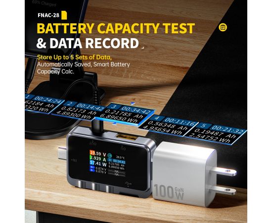 - تست ظرفیت باتری: ذخیره تا 5 مجموعه داده برای تحلیل ظرفیت پاوربانکها.