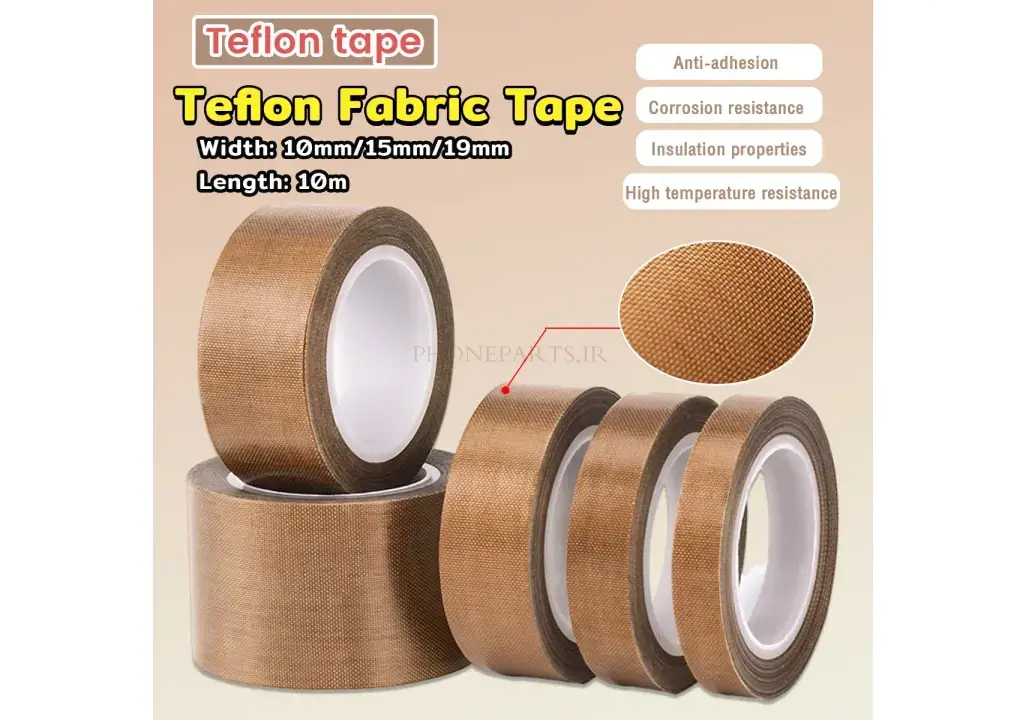 نوار تفلون حرارتی چسبدار ۱۰ میلی متر × ۱۰ متر