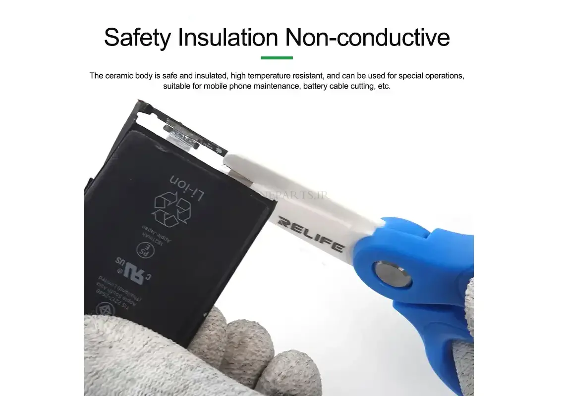 قیچی سرامیکی عایق RELIFE RL-102A یک ابزار کوچک و ایمن برای تعمیرات موبایل و برش کابل باتری است. این محصول به دلیل تیغه سرامیکی غیر رسانا، خطر نشتی برق را کاهش میدهد و برای کارهای ظریف مثل تعمیر گوشی یا برش سیمهای حساس بسیار مناسب است.