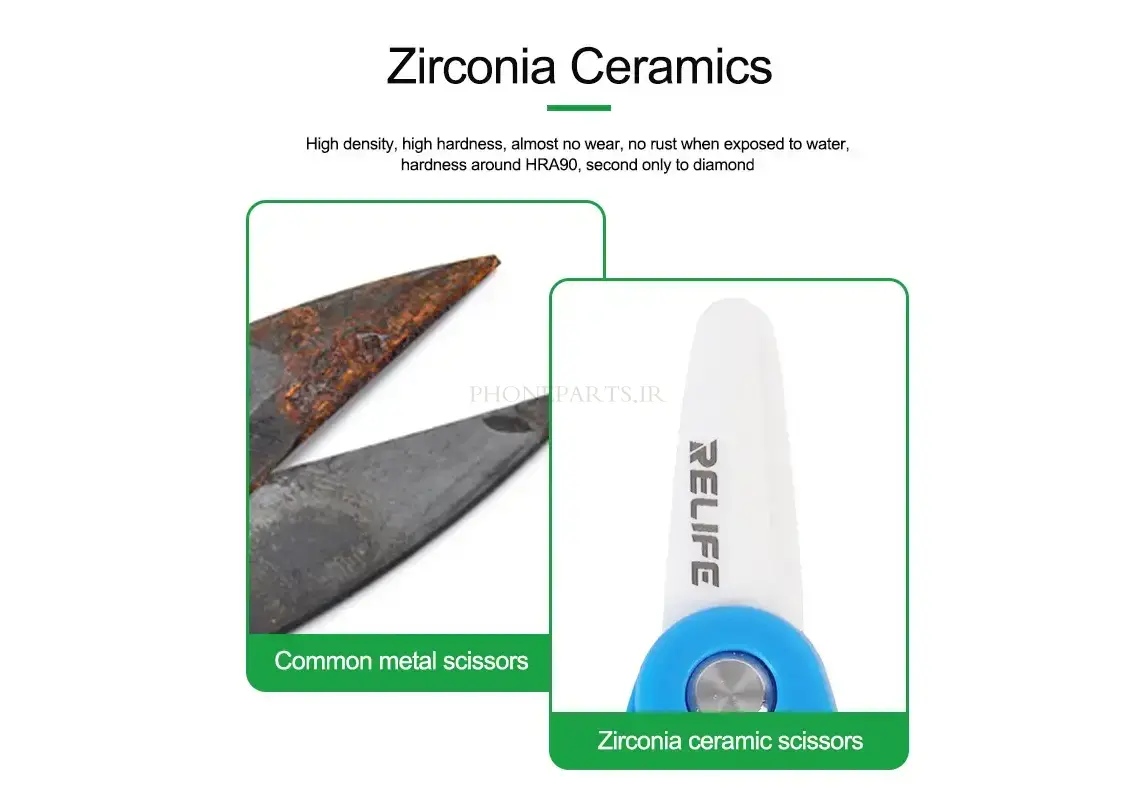 - تیغه سرامیکی ضخیم و عایق: ساخته شده از سرامیک زیرکونیا، غیر رسانا و ایمن برای کار با باتریها.