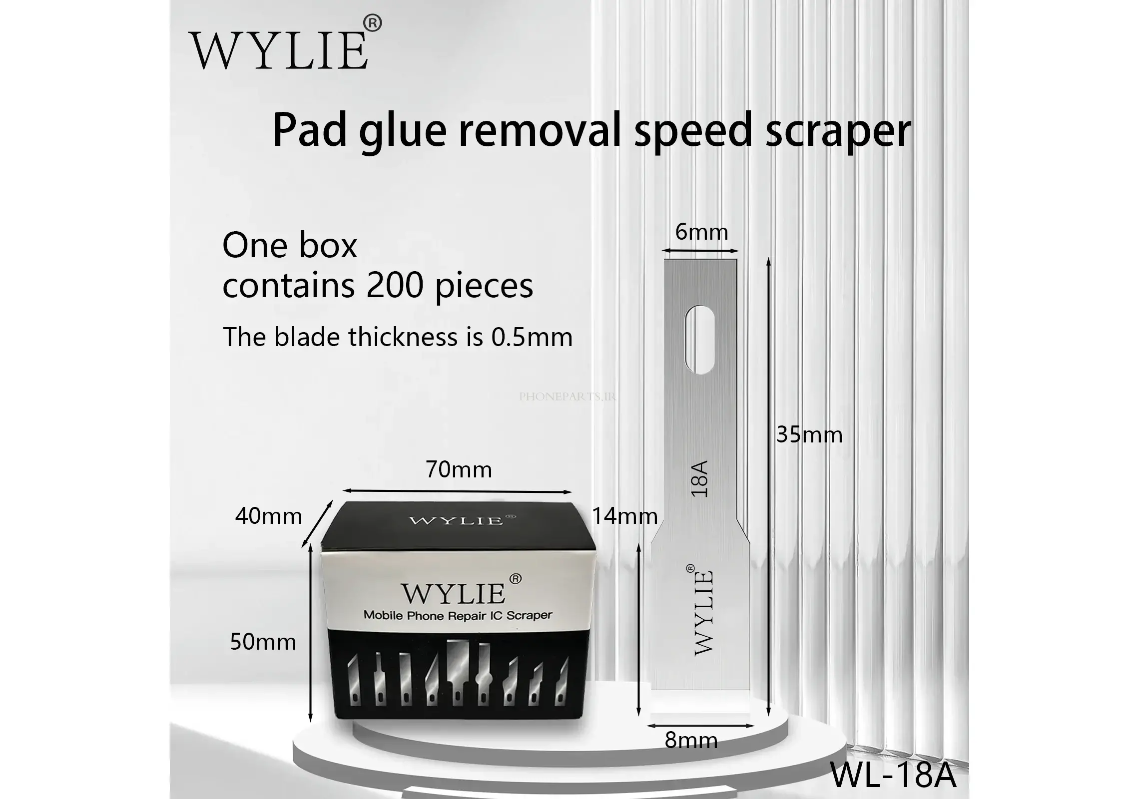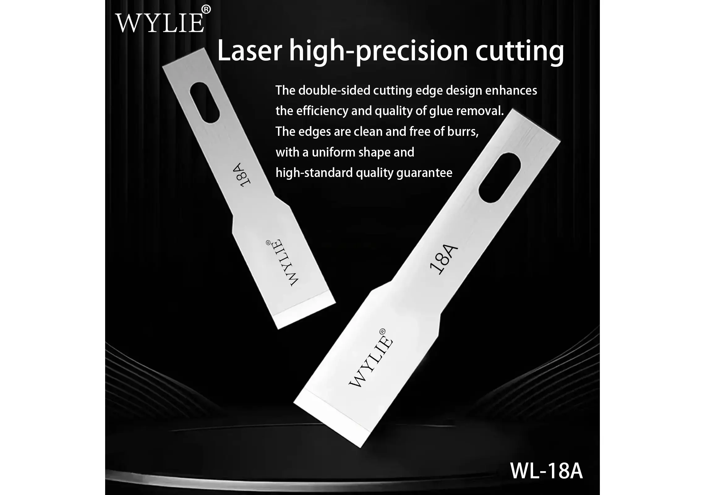 ابزار WYLIE WL-18A یک مجموعه حرفهای شامل 10عدد تیغه و ابزار مخصوص برای تعمیرات موبایل است. این ابزارها به طور ویژه برای برداشتن و پاکسازی چسب در بخشهای مختلف گوشیهای موبایل طراحی شدهاند؛ از جمله: