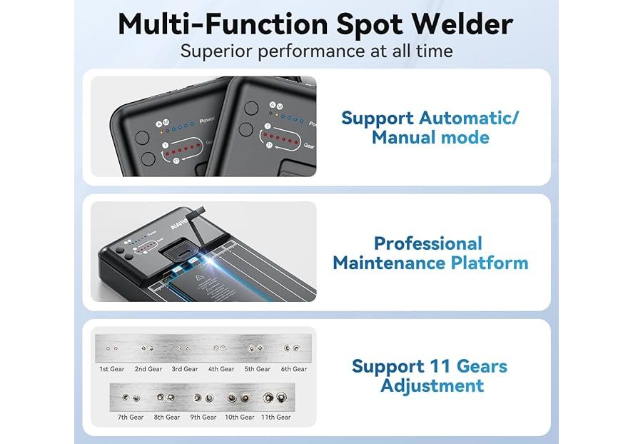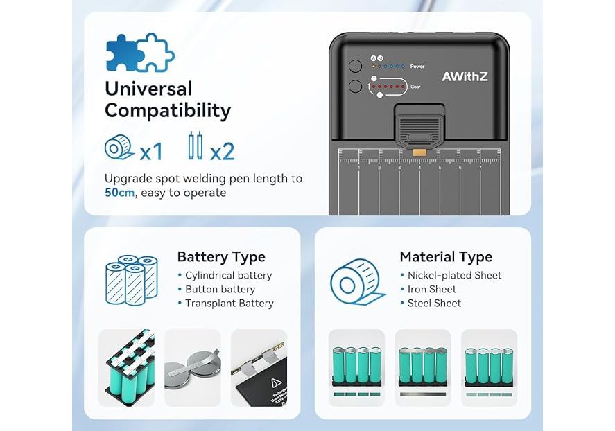 جوشکار نقطه ای باتری AWithZ ایجاد شد، می تواند به طور مداوم جوش نقطه ای ظریف را بین باتری ها انجام دهد، پس از آزمایش های فراوان، می توان از آن برای جوشکاری تزئینات فلزی نازک نیز استفاده کرد. به عنوان مثال، واحدهای برق باتری را برای وسایل برقی قطع شده تعویض کنید، انرژی جدید را به ابزارهای آسیب دیده تزریق کنید، آنها را بیدار کنید و اجازه دهید دوباره کار کنند.
