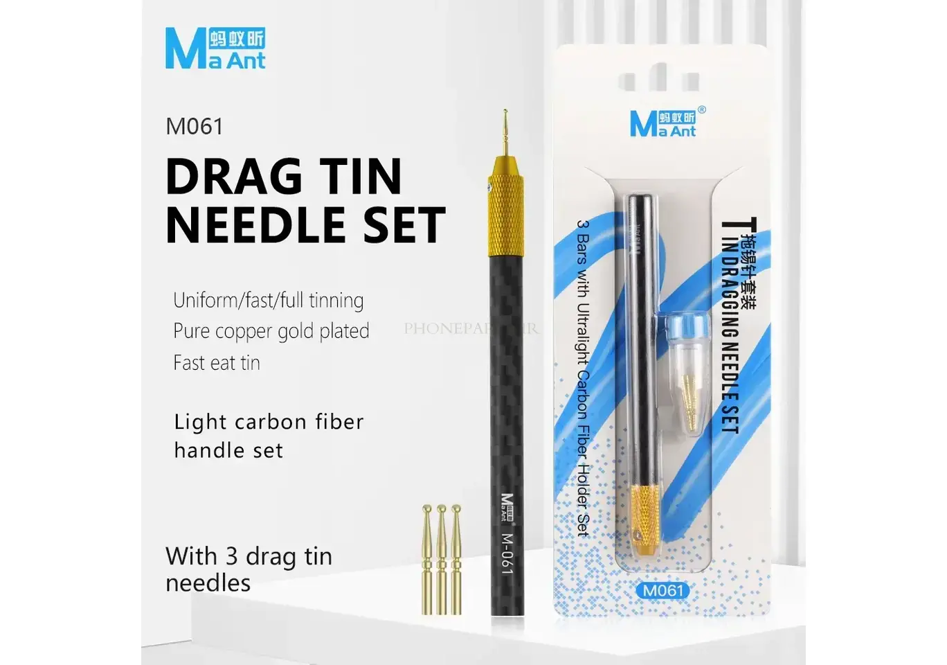 ابزار **MaAnt M061** انتخابی ایدهآل برای تکنسینهای حرفهای و تعمیرکاران الکترونیک است که به دنبال دقت و کیفیت در لحیمکاری و بازسازی چیپهای BGA و CPU هستند. این مجموعه سوزنهای طلاکاریشده با طراحی دقیق، برای پخش خمیر لحیم، تمیز کردن نقاط لحیمکاری و تعمیر کانکتورهای FPC در مادربورد گوشیهای هوشمند، تبلتها و لپتاپها طراحی شده است.