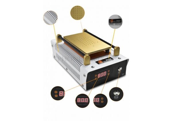 شما زمانی که میخواهید گلس آسیب دیده ال سی دی موبایل را تعویض کنید به مکش سپراتور جهت نگهداشتن تاچ بر روی صفحه گرمایش سپراتور نیازمند هستید.شما با فشر دکمه فلزی جلوی دستگاه،میتوانید این مکش را فعال یا غیر فعال کنید.توجه دشته باشید که میزان و قدرت مکش این دستگاه حد ثابتی دارد و غیر قابل تنظیم هست.