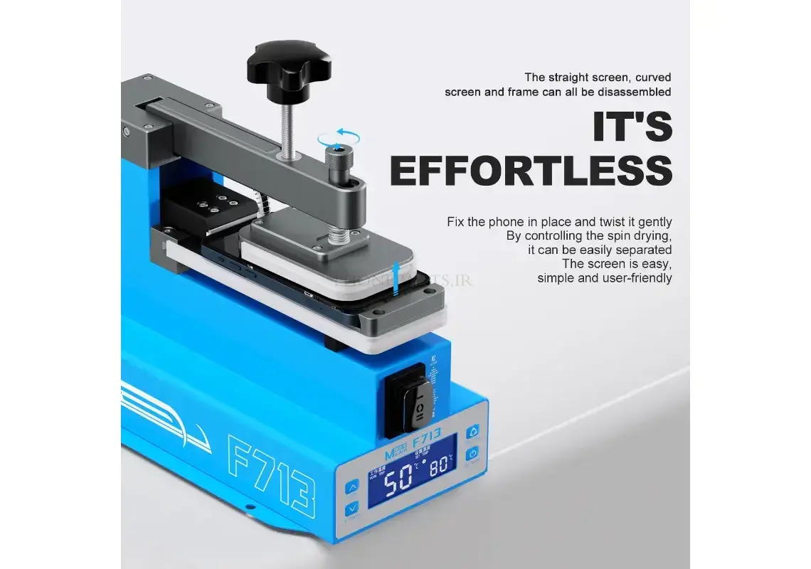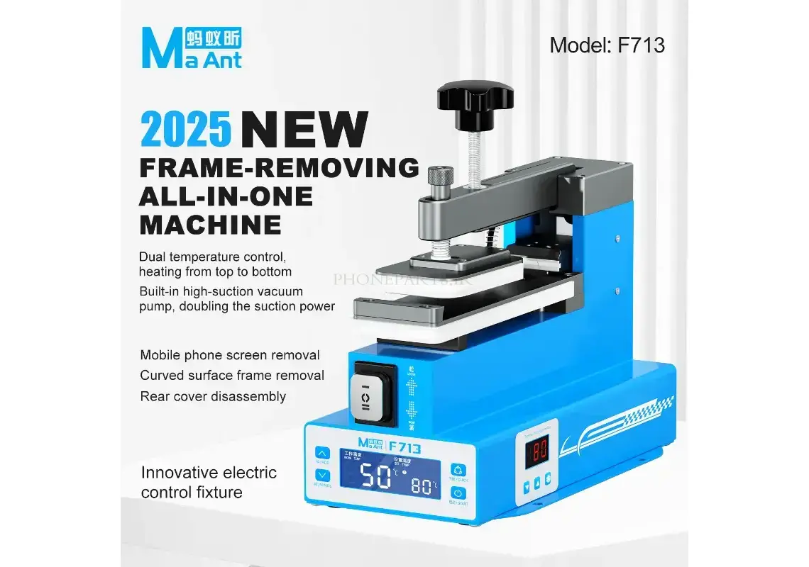 سپاریتور MaAnt F713 یک دستگاه حرفهای و چندکاره برای جداسازی قاب، صفحهنمایش و درب پشتی انواع گوشیهای موبایل است. این دستگاه با طراحی هوشمند، سیستم گرمایشی یکنواخت، پمپ مکش داخلی و گیرههای کنترل الکتریکی، فرآیند تعمیرات موبایل را سریعتر، دقیقتر و ایمنتر میکند.