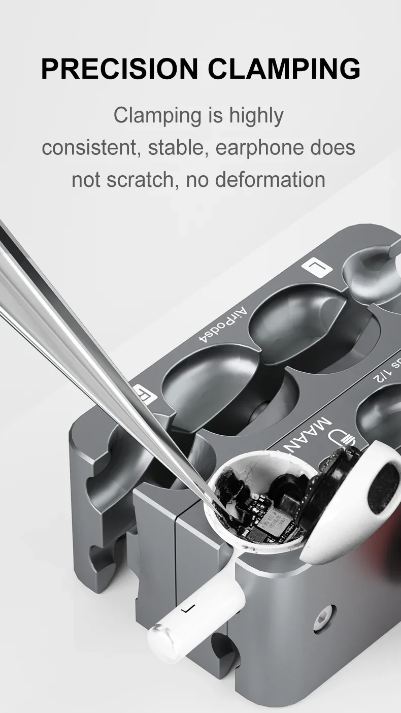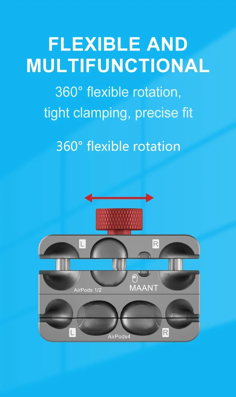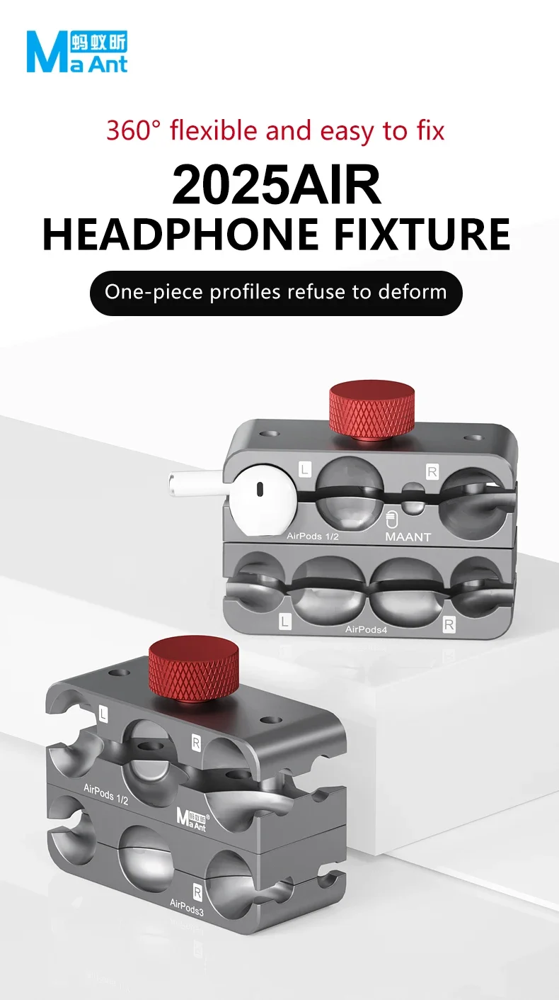 اگر از لغزش و بیثباتی هدفونهای AirPods هنگام تعمیر خسته شدهاید، گیره MaAnt 2025AIR طراحی شده تا دقت و ثبات را در فرآیند تعمیرات هدفونهای بیسیم اپل بازتعریف کند. این ابزار با طراحی کاربرمحور و ساختار مقاوم، تجربهای روان و مطمئن در تعمیرات فراهم میسازد.