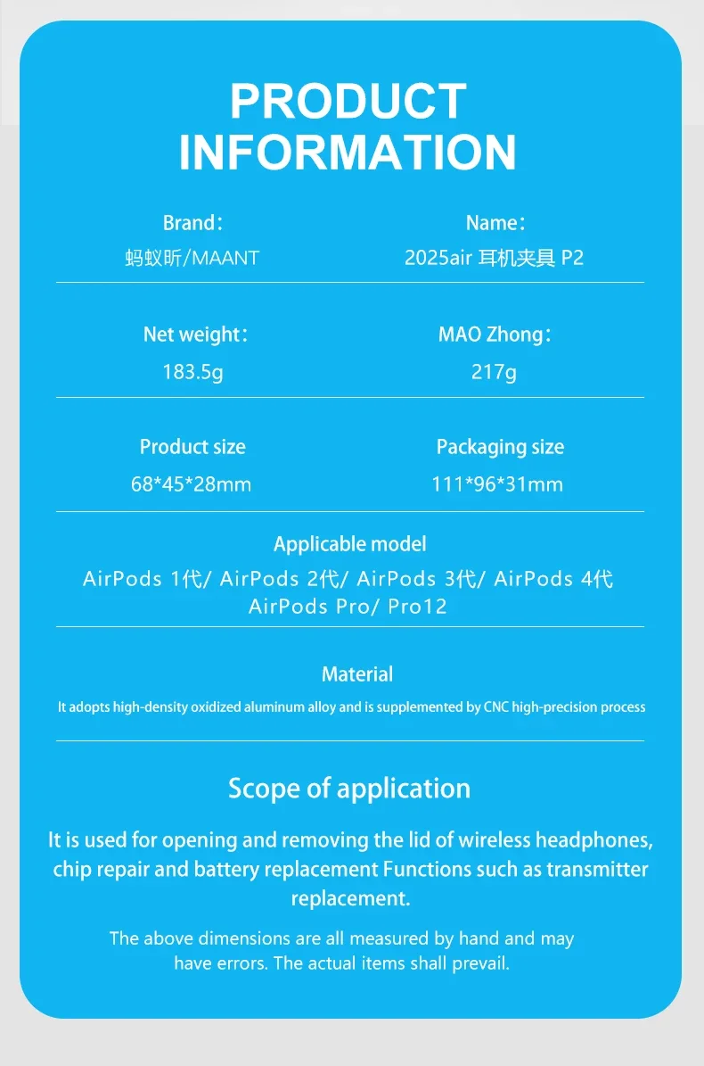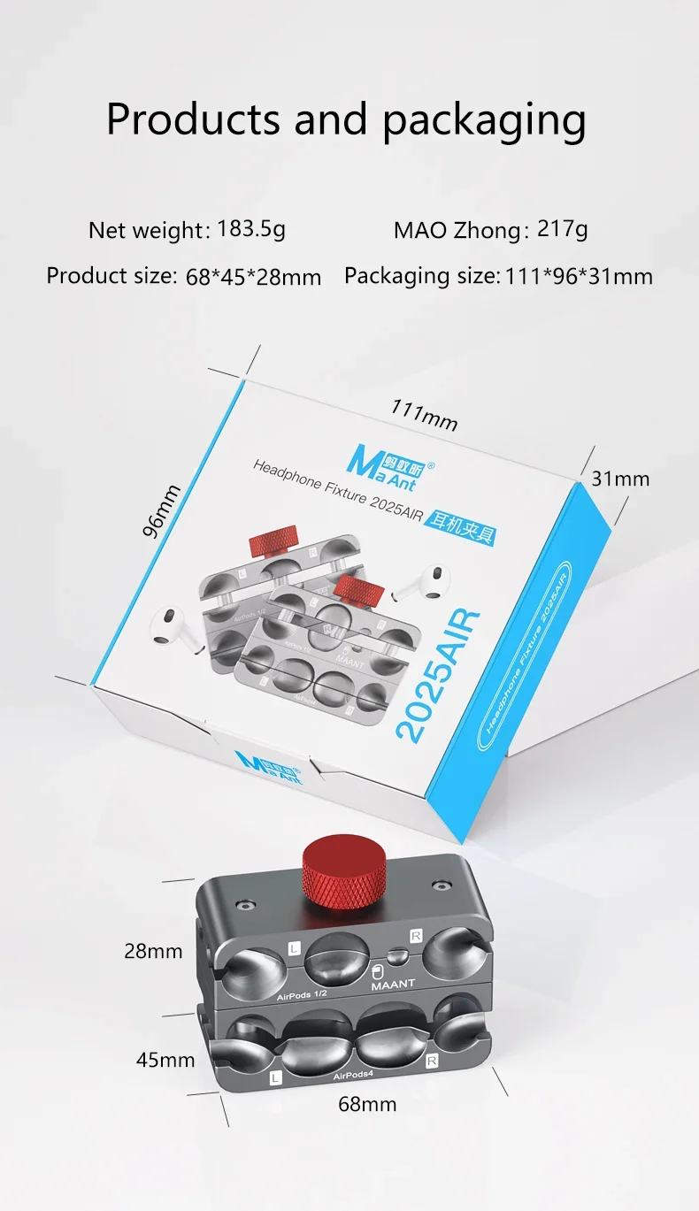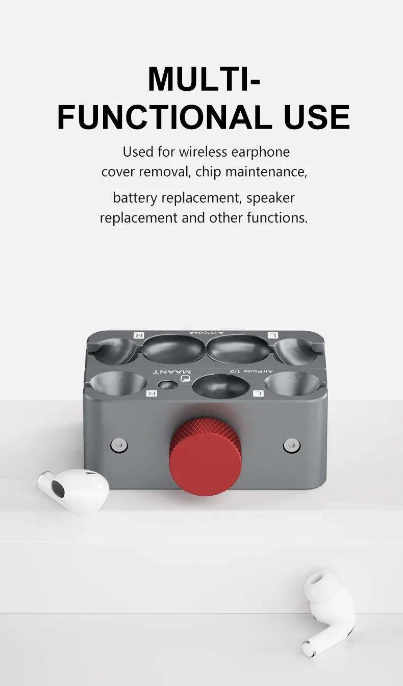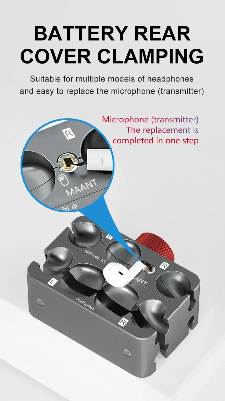 اگر از لغزش و بیثباتی هدفونهای AirPods هنگام تعمیر خسته شدهاید، گیره MaAnt 2025AIR طراحی شده تا دقت و ثبات را در فرآیند تعمیرات هدفونهای بیسیم اپل بازتعریف کند. این ابزار با طراحی کاربرمحور و ساختار مقاوم، تجربهای روان و مطمئن در تعمیرات فراهم میسازد.