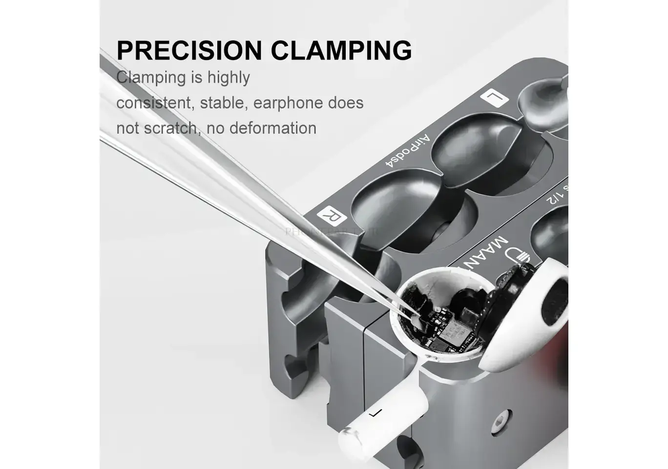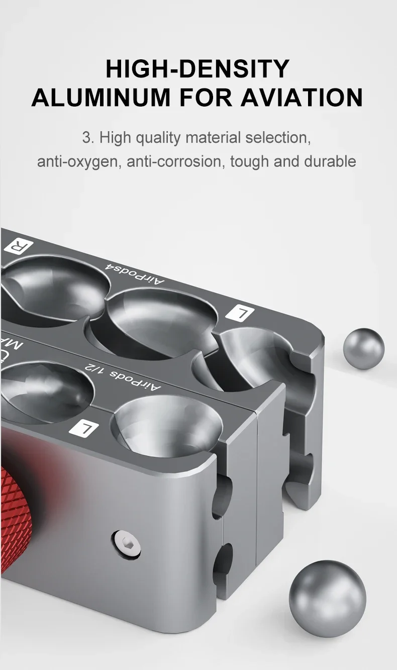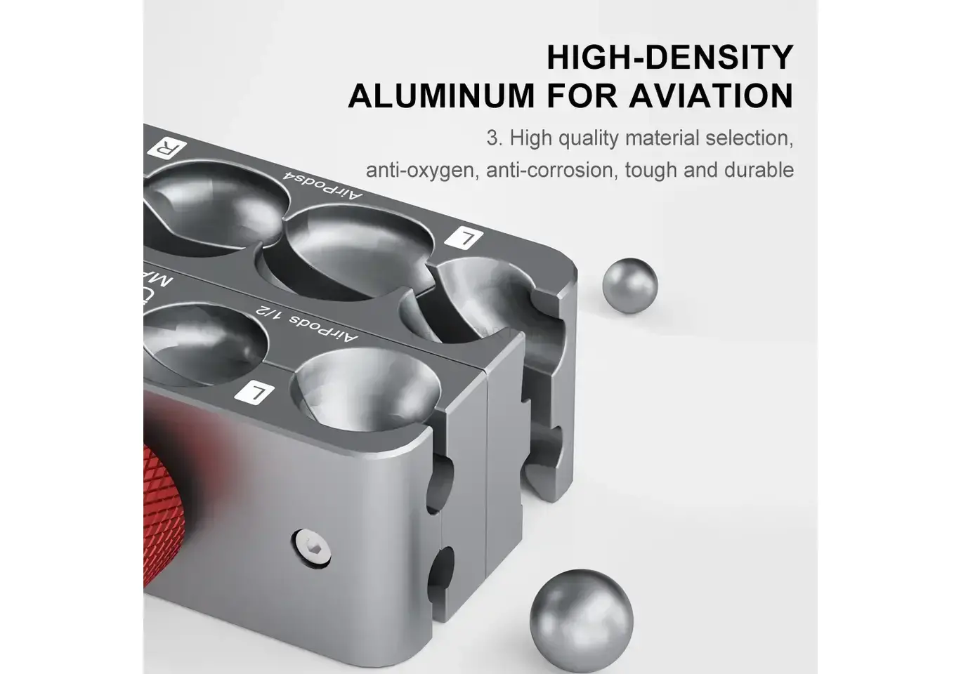 - تناسب دقیق با AirPods 1/2 و 4: شیارهای تراشخورده با دقت بالا، کاملاً منطبق با فرم هدفونها هستند و از لغزش یا جابهجایی حین تعمیر جلوگیری میکنند.
