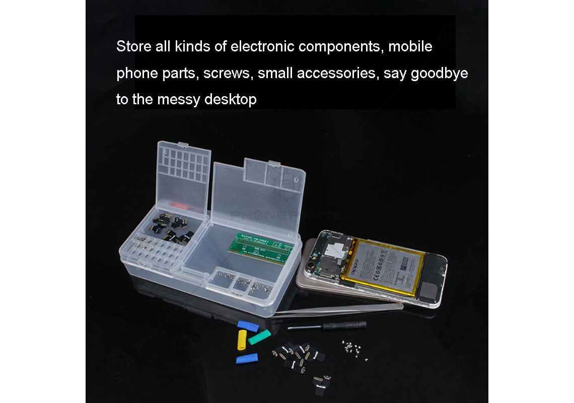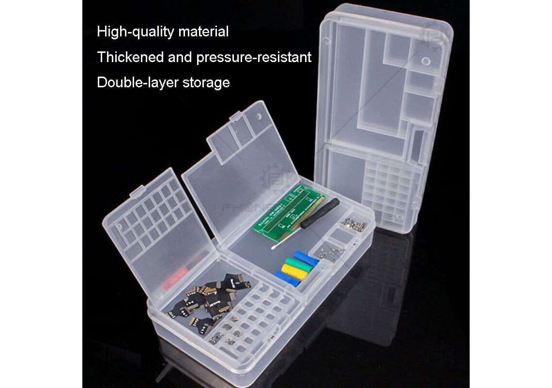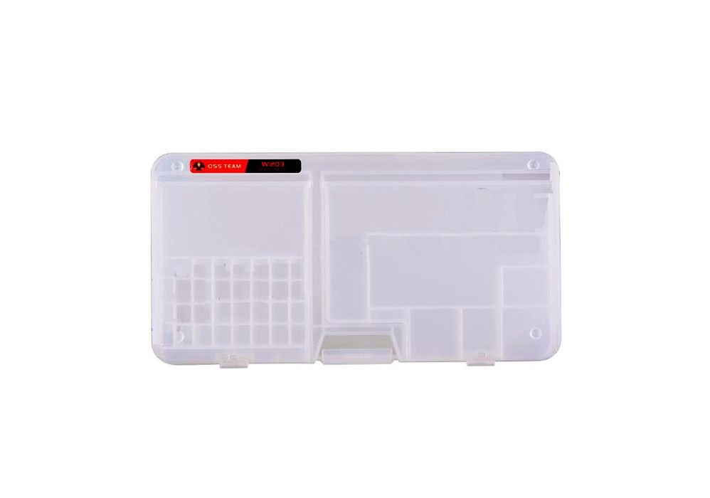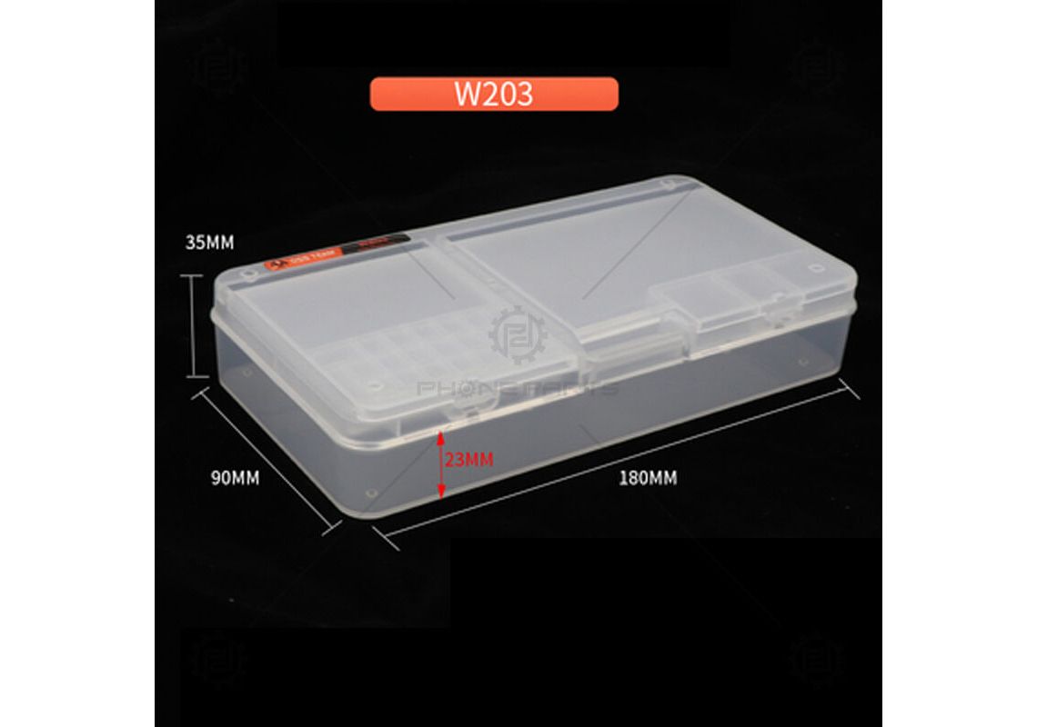 جعبه ذخیره سازی W203 یک ابزار بسیار کاربردی برای نگهداری و مدیریت قطعات مختلف موبایل،LCD، پردازنده، مادربرد، پیچها، تراشههای IC، و بسیاری از قطعات ریز در هنگام تعمیر میباشد.ممکن است که در هنگام تعمیر یک یا چند گوشی موبایل و قطعات حساس آن، نیاز به یک فضا برای جدا گذاشتن و نظم دادن به قطعات، برای جلوگیری از پراکندگی و یا تداخل با سایر گوشیهای تعمیری داشته باشید.جعبه ذخیره سازی چند کاره به شما کمک میکند بهراحتی و با اطمینان یک فضای مناسب برای قطعات حساس و مهم گوشیهای تعمیری داشته باشید.این جعبه ابزار از نظر حجم و وزن سبک بوده و فضای کمی را اشغال می کند. رنگ این جعبه ابزار شفاف بوده به طوری که محتویات داخل آن قابل مشاهده است.همچنین شما به راحتی میتوانید یک گوشه از میز کار خود را برای این جعبه ذخیره سازی اختصاص داده و با نظم و سازماندهی بهتر،از تعمیرات و نگهداری قطعات حساس اطمینان حاصل نمایید.