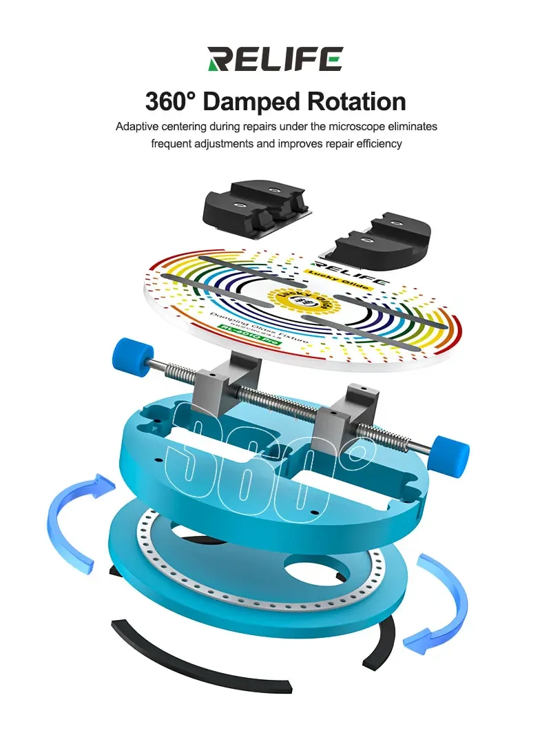 RELIFE RL-601Q Pro 360° Rotating Fixture تنها یک ابزار نیست، بلکه یک ابزار دقیق و حرفهای است که سطح تعمیرات شما را ارتقا میدهد. با قابلیت چرخش 360 درجه، تنظیم زاویههای مختلف و تثبیت ایمن قطعات، این محصول انتخابی ایدهآل برای هر تعمیرکار یا فروشگاه آنلاین تجهیزات تعمیر موبایل است.