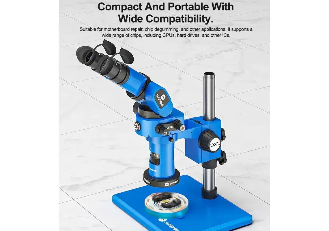 - چرخش 360 درجه برای انعطافپذیری کامل پایه چرخشی این دستگاه امکان دسترسی به تمام زوایا را فراهم میکند و کار با هویه، ایستگاه هوای گرم یا میکروسکوپ را آسانتر میسازد.