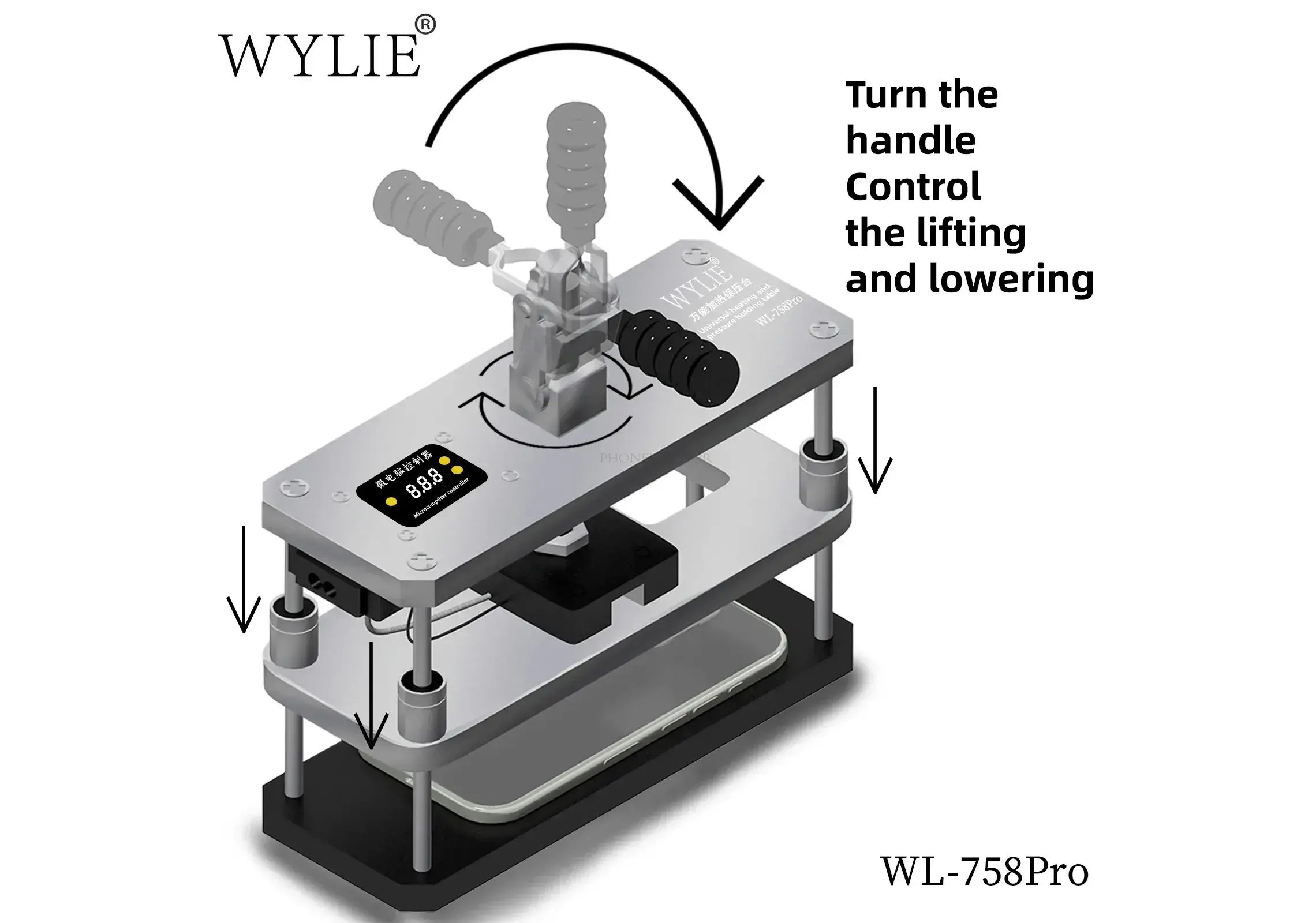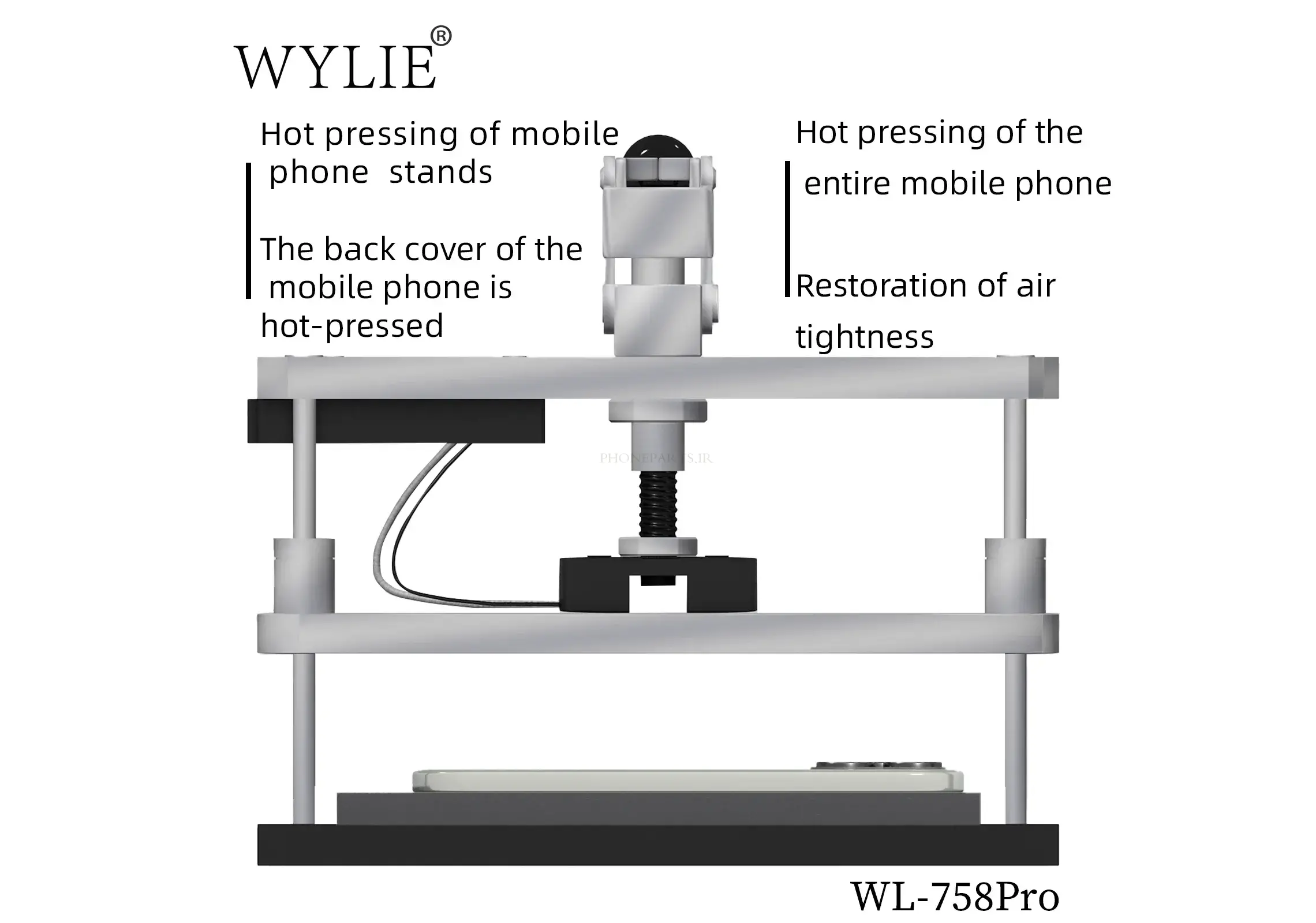 WYLIE WL-758pro یک ماشین پرس حرارتی و خلاء حرفهای با کیفیت ساخت عالی است که مخصوص تعویض صفحه نمایش (OLED و LCD)، درب پشت شیشهای، لمینیت OCA و فیکس کردن لنز دوربین طراحی شده.