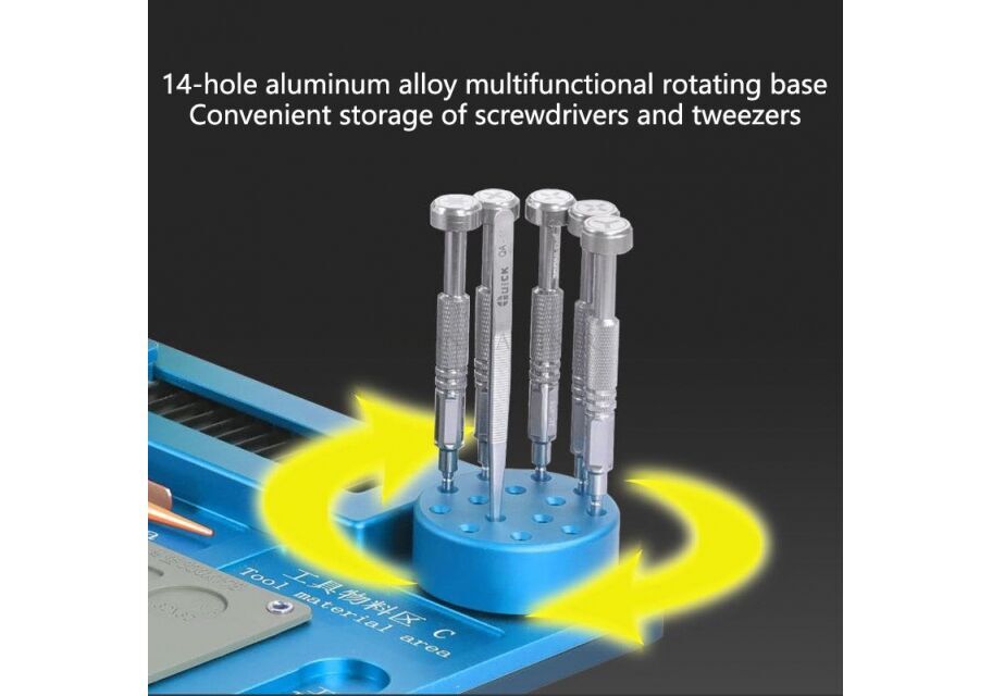 پلت فرم تعمیر و نگهداری پد آلیاژ آلومینیوم پیشرفته چند منظوره برای تعمیر تلفن همراه، برای پلت فرم تعمیر و نگهداری تلفن همراه و میکروسکوپ پایه ثابت گیر می کند. این محصول می تواند تصاویر کاری تمیز و استاندارد شده را برای هر استاد تعمیر و نگهداری الکترونیکی ارتباطی و مشتری به ارمغان بیاورد، محیط کار تمیز و مرتب می شود و طراحی صفحه کار انسانی می شود.