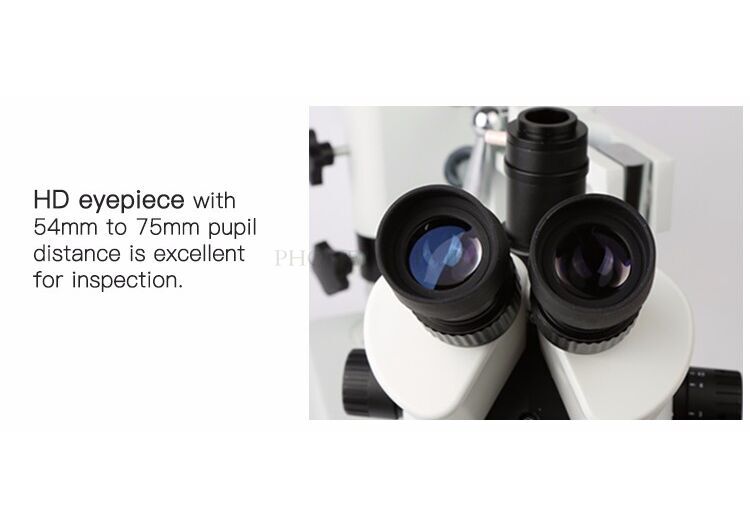 -دارای جفت چشمی قابل تعویض WF10x18mm و WF20x10mm با هدف 1x برای بزرگنمایی 20x و 40x ، و فاصله کاری طولانی تر برای بازرسی نمونه های بزرگ که نیاز به دستکاری یا تعمیر دارند.