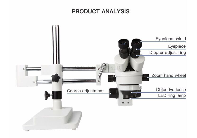میکروسکوپ دارای ستون 13.5 اینچی است که فاصله عمودی 9 اینچی را فراهم می کند.
