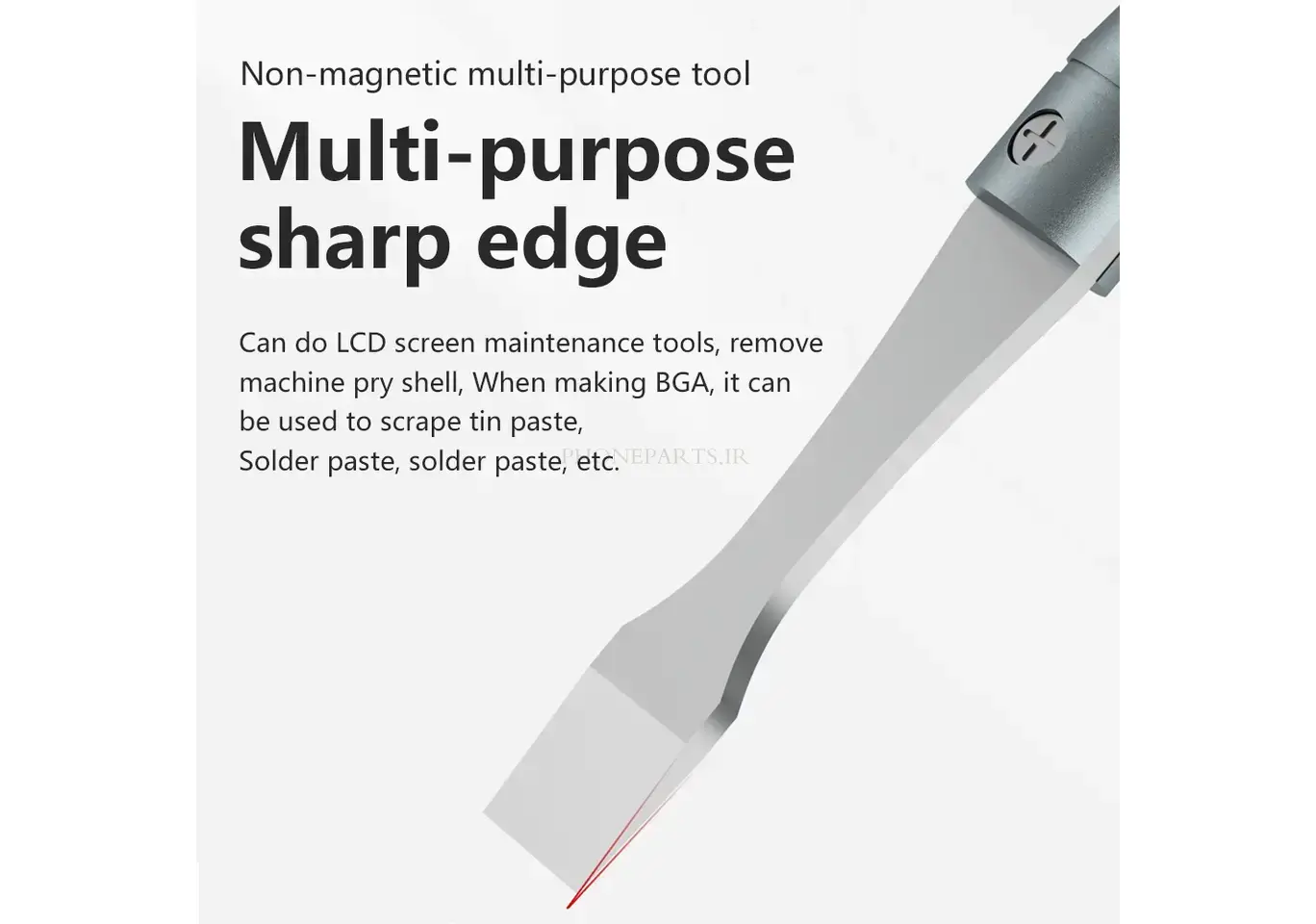 - اسپاجر بازکننده: با نوک تیز و مقاوم، برای باز کردن قاب گوشیها، جدا کردن نمایشگرهای LCD، یا برداشتن قطعات چسبناک بدون آسیب به اجزای حساس.