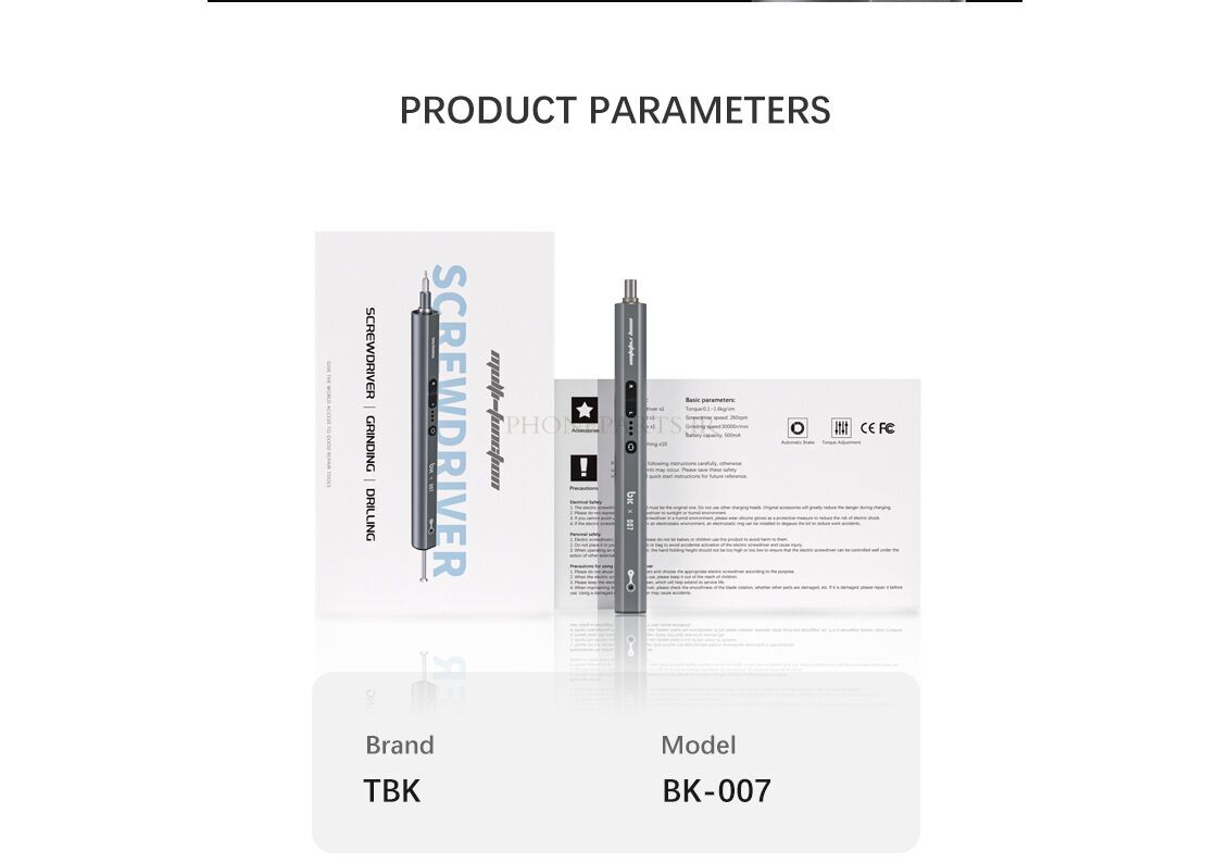 پیچگوشتی چندکاره TBK-007 یک ابزار پیشرفته و همهکاره است که برای پاسخگویی به نیازهای تعمیرکاران حرفهای، تکنسینهای الکترونیک و علاقهمندان به پروژههای DIY طراحی شده است. این ابزار با ترکیب دقت، قدرت و انعطافپذیری، نهتنها یک پیچگوشتی الکتریکی است، بلکه قابلیتهای سایش، برش و سوراخکاری را نیز ارائه میدهد. اگر به دنبال ابزاری سبک، ارگونومیک و قابل اعتماد برای تعمیر موبایل، تبلت، لپتاپ، ساعت، دوربین یا سایر وسایل الکترونیکی هستید، TBK-007 بهترین انتخاب شماست.