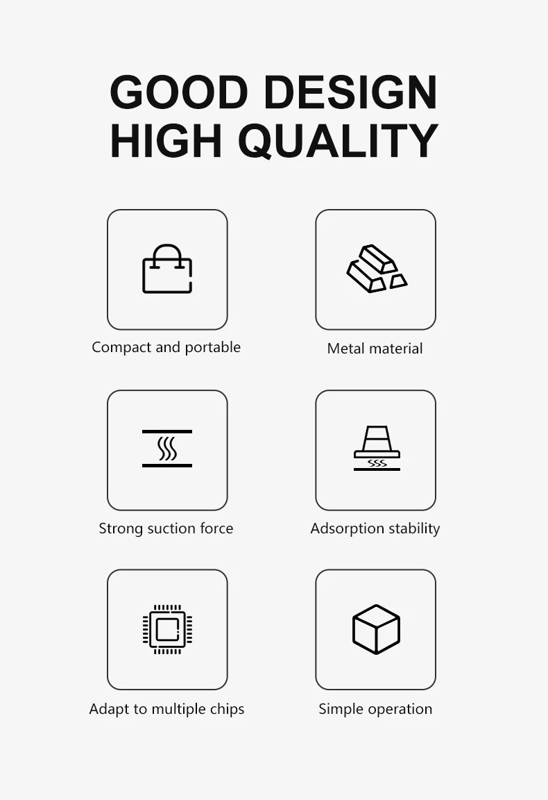 - مکش قوی و پایدار: تثبیت چیپ بدون لغزش در حین تعمیر