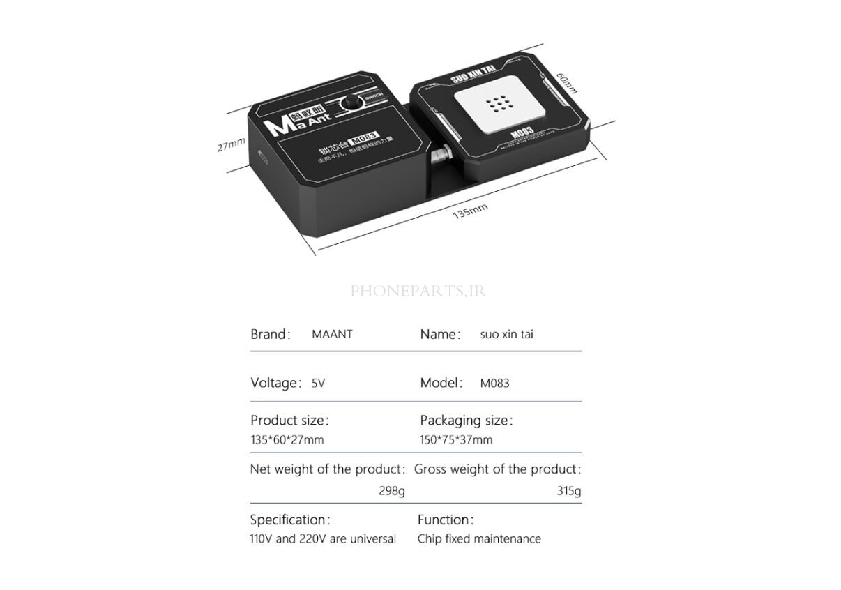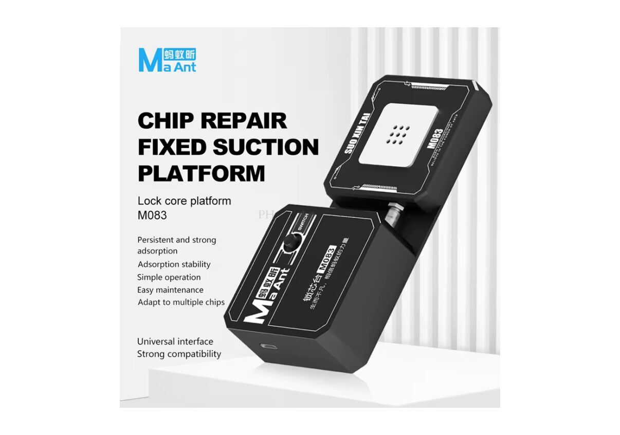 پلتفرم مکنده تعمیر چیپ MaAnt M083 یک ابزار حرفهای برای تثبیت چیپهای موبایل در فرآیند تعمیر، لحیمکاری و برداشتن قلع است. این محصول با طراحی مقاوم، مکش قوی و رابط Type-C، انتخابی مناسب برای تعمیرکاران موبایل و الکترونیک محسوب میشود.