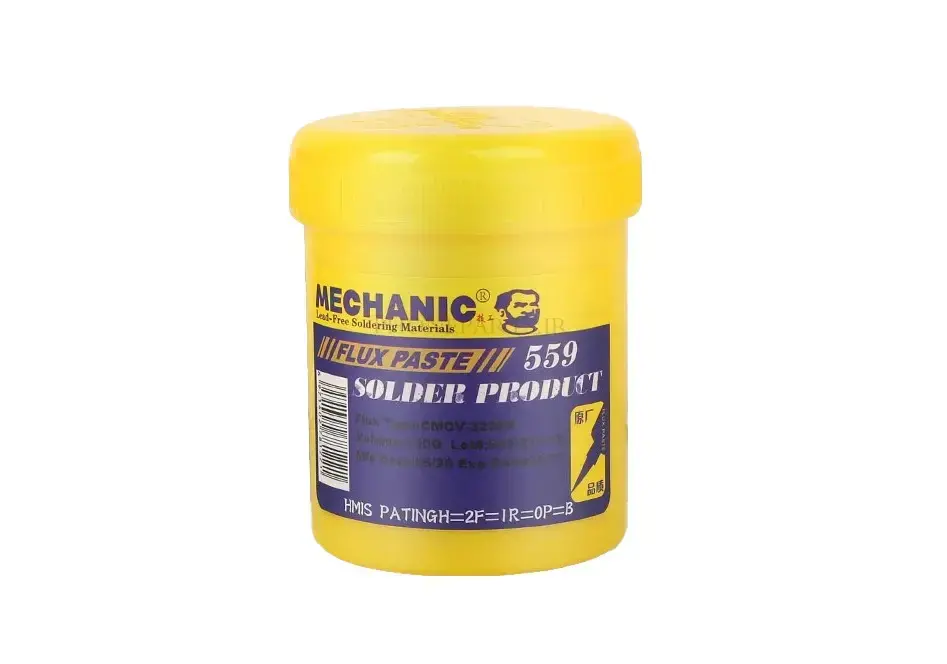 خمیر فلکس مکانیک 559 محصولی تخصصی و باکیفیت برای لحیمکاری و تعمیرات الکترونیکی دقیق، بهویژه برای تعمیر بردهای موبایل، BGA، PGA و SMD است. این فلکس بدون سرب، سازگار با محیط زیست و مطابق با استاندارد RoHS بوده و انتخابی ایدهآل برای تعمیرکاران حرفهای و پروژههای حساس الکترونیکی است.