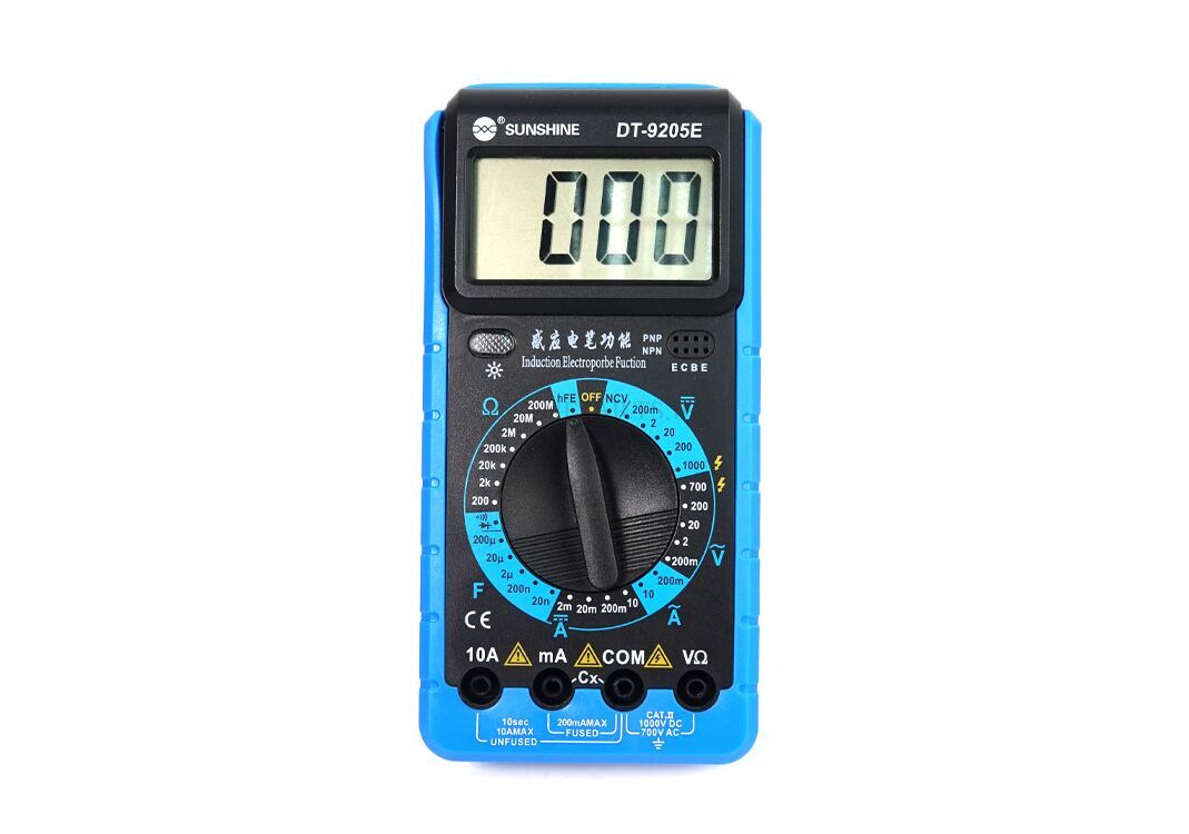 مولتی متر دیجیتالی Sunshine DT-9205E یک مولتی متر خودکار دیجیتالی با قابلیت اندازه گیری رنج وسیعی از کمیت های الکتریکی می باشد.