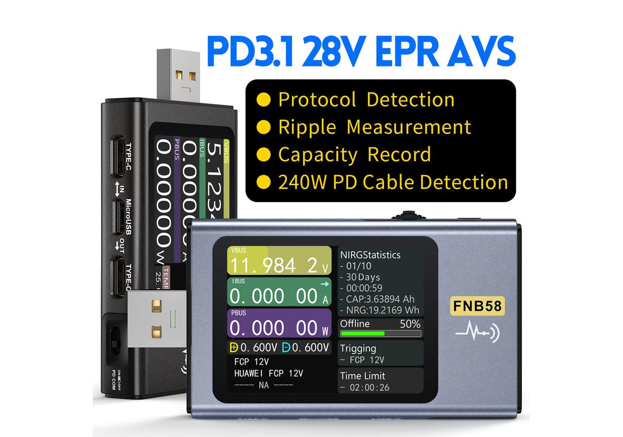 تستر USB FNIRSI FNB58: ابزار حرفهای برای تست و اندازهگیری دقیق