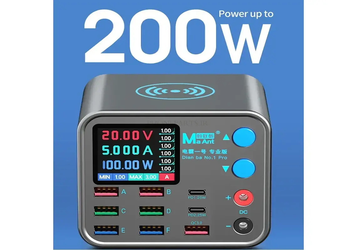 شارژ سریع چند پورت: دارای 8 پورت PD برای شارژ سریع و کارآمد دستگاههای مختلف.