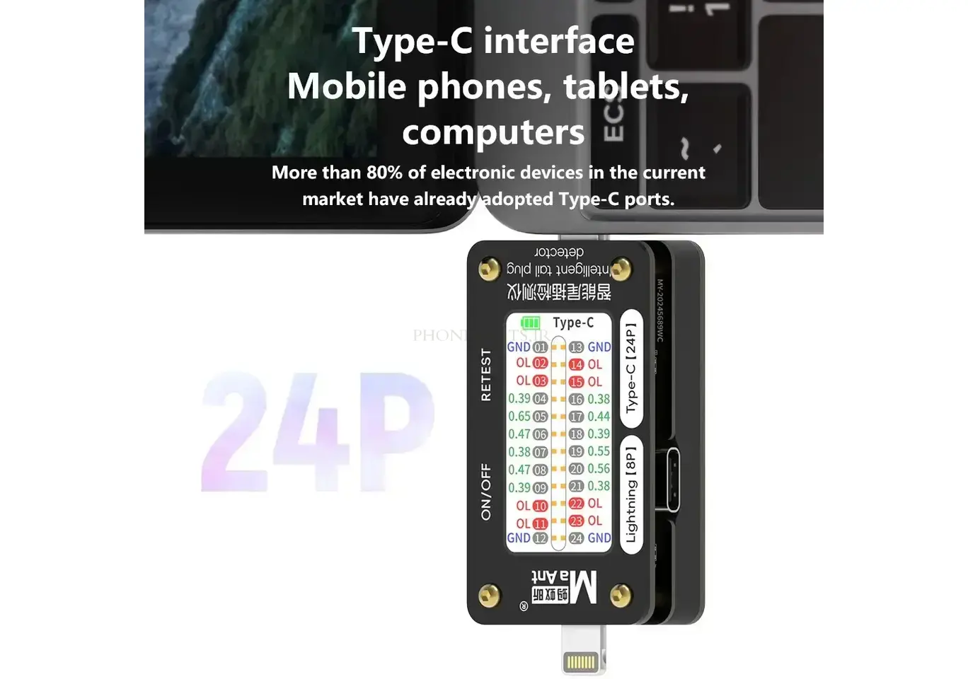 Maant MX-02 iPhone Android Lightning Type-C Tail Plug Detector Automatic Tail Insertion Detection Current Power Check Tester