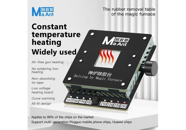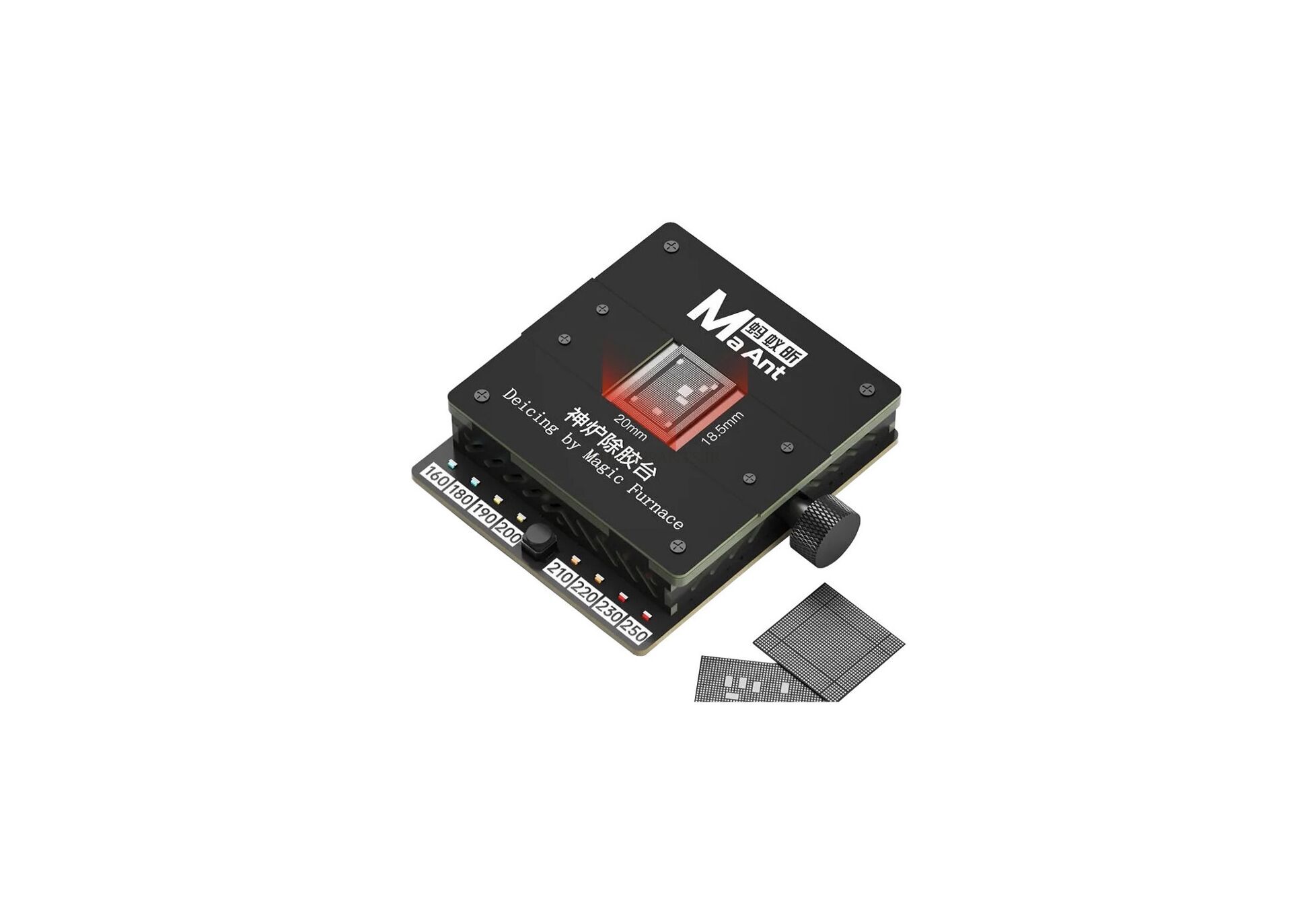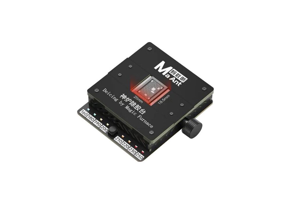 پلتفرم گرمایش ثابت MaAnt SL-1 یک ابزار چند منظوره است که برای حذف چسب از چیپهای مختلف، از جمله آنهایی که در دستگاههای آیفون و هوآوی وجود دارند، طراحی شده است.