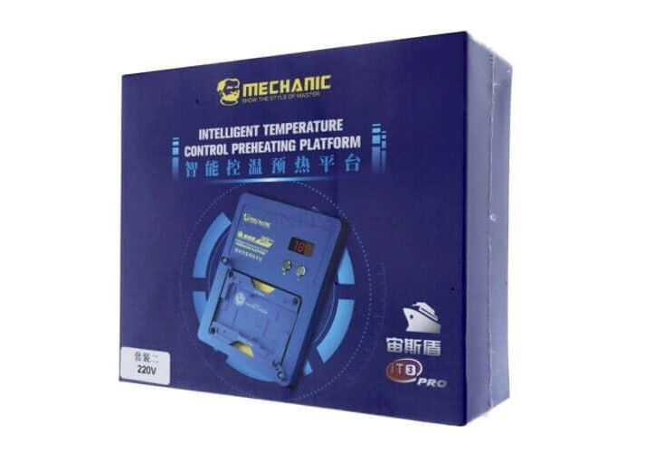 پلتفرم پیشگرمایش هوشمند MECHANIC iT3 Pro یک ابزار حرفهای و پیشرفته برای تعمیرات تخصصی مادربرد گوشیهای آیفون مدل X تا 15 Pro Max است. این دستگاه با طراحی ماژولار و قابلیتهای متعدد، فرآیندهایی مانند لایهبرداری مادربرد، کاشت قلع، جداسازی BGA، حذف چسب IC، تعمیر فیس آیدی (Dot Matrix) و تعمیر دوربین عقب را بهصورت سریع، دقیق و بدون نیاز به ابزارهای اضافی مانند هیتر و هویه انجام میدهد. این ابزار با بهرهگیری از فناوری Plug-and-Play و کنترل دمای هوشمند، گزینهای ایدهآل برای تعمیرکاران حرفهای است.