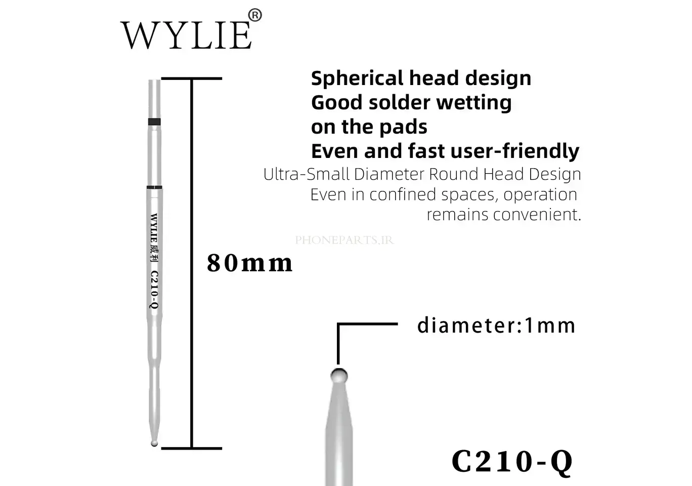 نوک هویه مدل WYLIE C210-Q یکی از ابزارهای تخصصی برای لحیمکاری دقیق در تعمیرات الکترونیکی است. این نوک با طراحی سر گرد (Ball Head) و هستهی حرارتی با کیفیت، مناسب برای دستههای T210 بوده و در ایستگاههای لحیمکاری حرفهای مانند JBC، Aixun و GVM قابل استفاده است.