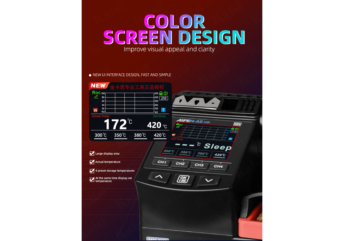 AIFEN A9HD C210 = دقت میکرو + قدرت بالا + قیمت عالی + ظاهر حرفهای. با این دستگاه لحیمکاری سریع، تمیز و بدون دردسر خواهید داشت!