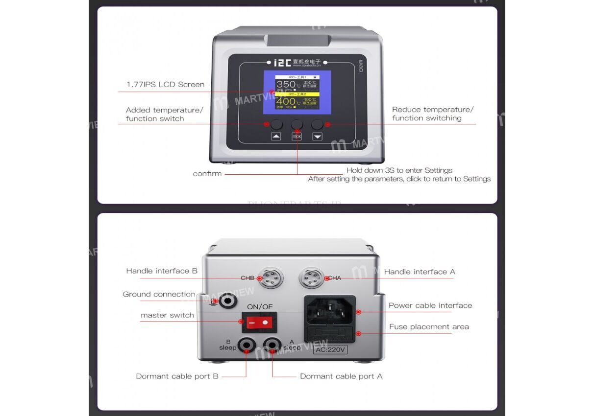 ایستگاه لحیم کاری هوشمند دوگانه i2C 1SCN با دسته لحیم کاری ایستگاه لحیم کاری برقی C210/C115 برای تعمیر بردهای تلفن همراه